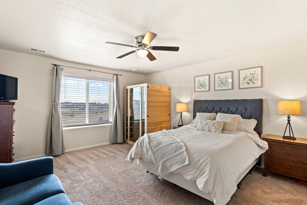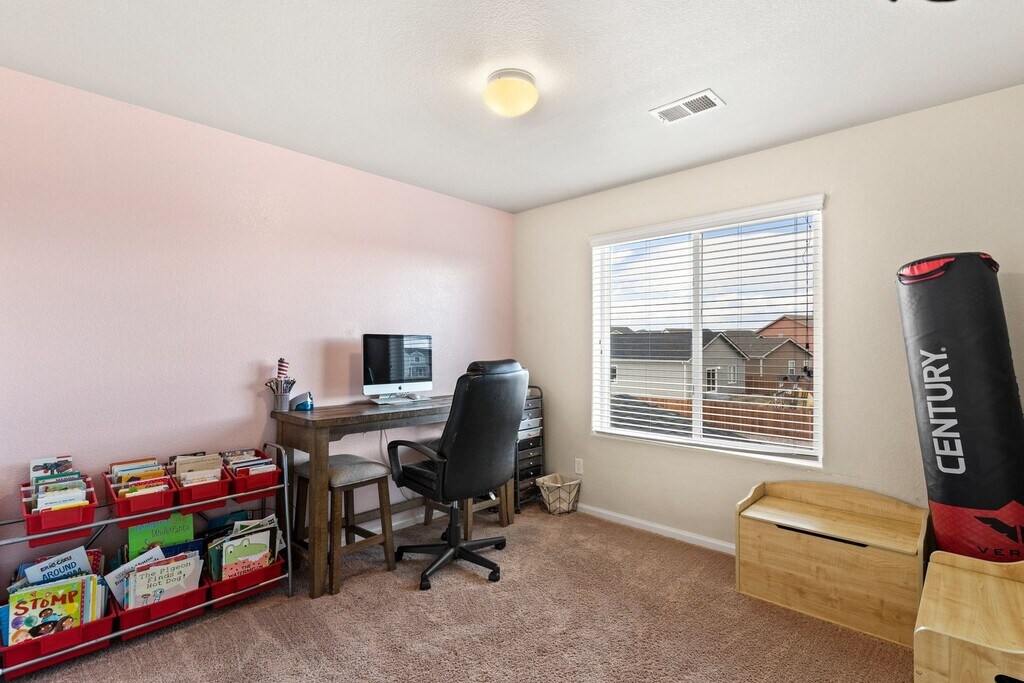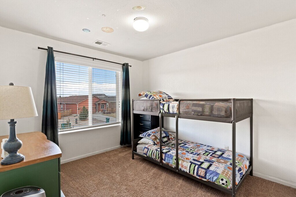 Welcome to the Beautiful Home in Larson Ranch on Intrepid Way, located in the heart of Colorado Springs, CO. This stunning property boasts 5 spacious bedrooms and 3 full bathrooms, offering ample space for comfort and relaxation. The home is equipped with a radon system and solar panels, ensuring a safe and eco-friendly living environment. The automatic sprinklers keep the outdoor area lush and inviting, while the community play area and nearby hiking or biking trails provide plenty of opportunities for outdoor activities. The property is conveniently located close to military bases, making it an ideal choice for those seeking easy access to these facilities. With two air conditioners and two furnaces, this home ensures year-round comfort. Experience the perfect blend of comfort, convenience, and sustainability at this beautiful home in Larson Ranch on Intrepid Way. Security deposit is a minimum of rent + $300 and is subject to change based on the applicants' verified credit report Colorado Best Team @ Pikes Peak Dream Homes Realty