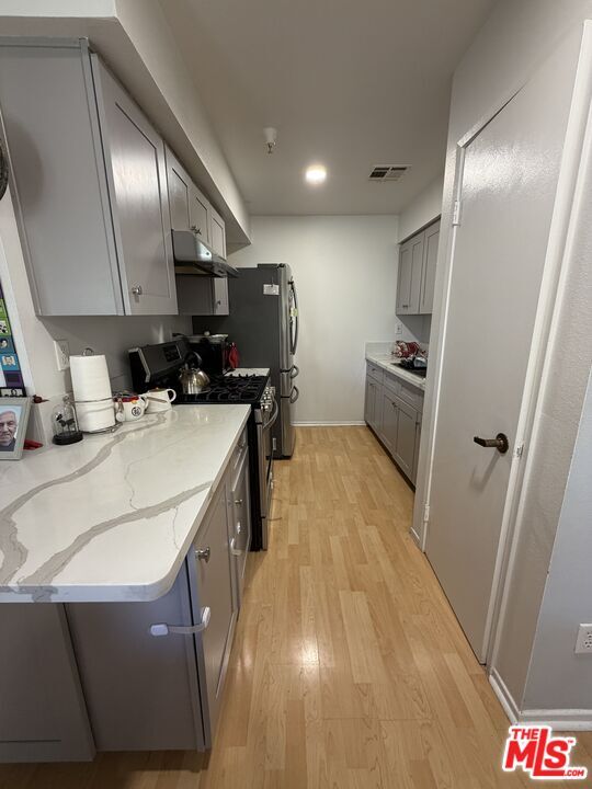 Spacious 2-bedroom, 2-bath first-floor condo with approximately 1,100 sq ft of comfortable living space. Bright and airy unit features an open floor plan, large living room, updated kitchen and bathrooms, recessed lighting throughout, and wood-style flooring. Includes in-unit washer/dryer hookups, central A/C and heating, and abundant natural light. Secure building with elevator access, gated parking, and live security cameras in common areas. Enjoy a small private garden at the front door, for your own plants. Currently tenant-occupied; available for move-in starting the first week of April. Text listing agent to schedule a showing. MLS# 26665679