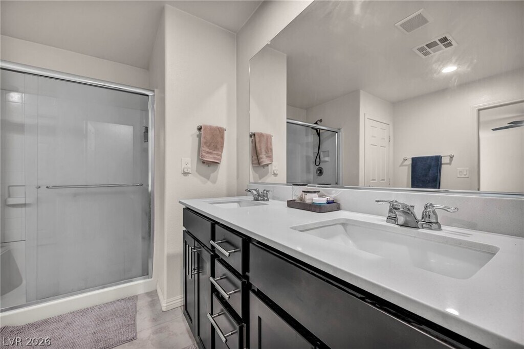 Welcome to this well maintained two-story home offering 4 bedrooms and 3 bathrooms including a convenient first-floor bedroom and full bath, perfect for guests or multi-generational living. The main level features an open living area connected to the kitchen, ideal for everyday entertaining and effortless flow. A dedicated storage/flex closet downstairs adds extra convenience. Upstairs you'll find three additional bedrooms plus a versatile loft that works great as a home office, media room, or playroom. Built in 2017, this home is move-in ready with a 2-car attached garage and a functional layout throughout. Located in Southwest Las Vegas with easy access to area amenities, shopping, dining, and major roadways.