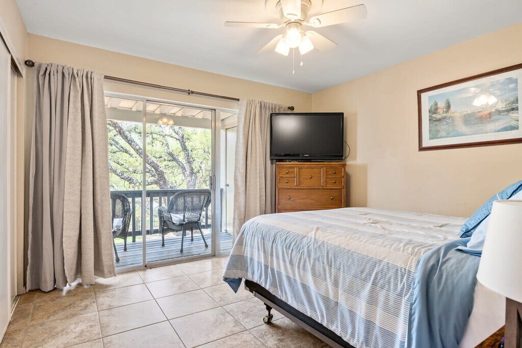 The advertised rate of $2,448/month is the lowest available price, based on a 1 month(s) stay with a move-in date of April 14, 2026. Rates vary depending on the duration of stay, season, and other parameters. For exact pricing and additional pricing components, please visit our website and enter your desired move-in and move-out dates. The rate is applicable when billed upfront; it can be higher if billed in multiple payments. Welcome to this Canyon Lake condo, the perfect retreat for families and groups seeking a memorable getaway! Feel at home in this spacious 3-bedroom, 2-bathroom condo that accommodates up to 8 guests. This unit is a second-floor condo with serene views of the pool and trees. The stylish and modern living area features tasteful decor and plush furnishings. The fully equipped kitchen includes top-of-the-line appliances, ample counter space, and all the necessary utensils to whip up delicious meals. Enjoy the community pool and grill. Pets are welcome. Located in the beautiful Texas Hill Country, this listing is just steps from the shoreline of Canyon Lake and less than 1 mile from local restaurants and stores. Explore the natural wonders of Canyon Lake, where you can indulge in boating, fishing, or simply soaking up the sun on the sandy shores. Discover nearby hiking trails that wind through picturesque landscapes, providing endless opportunities for adventure. The primary guest must be at least 21 years of age to book this property. Check-in is at 4 pm and check-out is at 10 am. [SI]