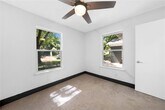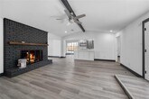 Designer-Inspired Remodel in a Prime Location! Step into sophistication with this fully renovated 3-bedroom, 2-bath home that perfectly blends modern elegance with everyday comfort. Welcomed by striking double front doors, you're greeted by a sun-drenched open layout adorned with premium LVP flooring and designer lighting. The spacious living area is anchored by a bold black-painted brick fireplace — a true statement piece — and a custom wet bar ideal for effortless entertaining. The sleek galley-style kitchen boasts gleaming quartz countertops, upgraded stainless steel appliances, and abundant storage, creating a dream space for any home chef. Both bathrooms have been completely transformed with luxurious finishes, including dual vanities, floor-to-ceiling tile, and oversized walk-in showers. Retreat to generously sized bedrooms that offer style and serenity, while the expansive, private backyard invites outdoor living at its finest — perfect for gatherings, play, or peaceful solitude. With attention to detail at every turn, this home is a rare find you won’t want to miss!