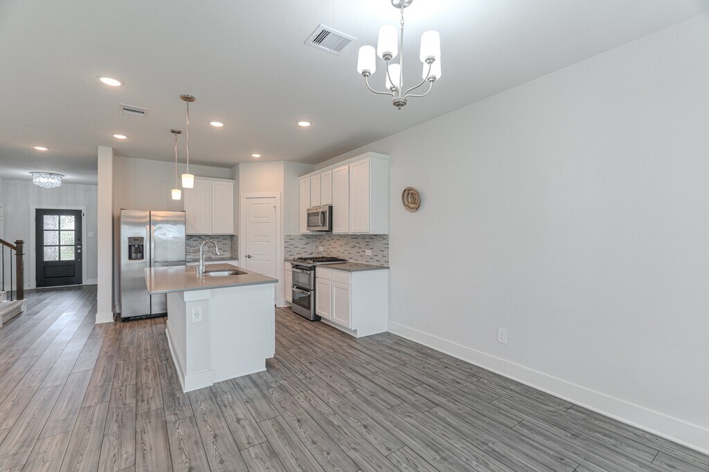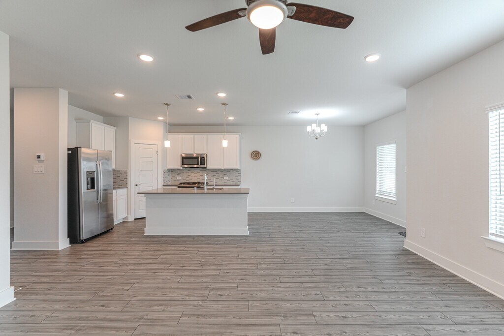 Welcome to this beautiful Magellan floor plan! Step into a spacious foyer that leads to a versatile den,perfect as a sitting area or home office. The open-concept design connects the dining area,kitchen,and family room — ideal for entertaining and everyday living. The kitchen features a tile backsplash,quartz countertops,a large center island,and white shaker-style cabinets,with an extended dining area for extra space. The owner’s suite at the rear offers a bay window for natural light,a luxurious bath with a walk-in shower,soaking tub,and walk-in closet. Upstairs,three bedrooms each have their own walk-in closet,plus a full bath and large game room for movie or game nights. Enjoy outdoor living on the covered patio just off the family room. Schedule your tour today! MLS# 50939122