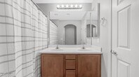 Welcome to this charming 3 bedroom,2.5 bath home with a thoughtful two story floor plan in the highly desired Casa Del Ray at Camino A Lago community. The main level offers porcelain plank tile flooring,a kitchen complete with white cabinetry,stainless steel and black appliances,ample storage,and generous countertop space. The open living and dining areas are perfect for entertaining with seamless access to the private courtyard through sliding glass doors. Spacious primary suite with a full bath and walk-in closet. Home is complete with blinds,ceiling fans,and a convenient laundry room with washer and dryer. Enjoy a low maintenance private courtyard and a 2-car tandem garage. Community offers fantastic community amenities including a pool & spa,playgrounds,and scenic biking/walking trails. Close to schools,shopping and dining. Quick access to the Loop 303 makes commuting easy. Shorter term leases are an option.