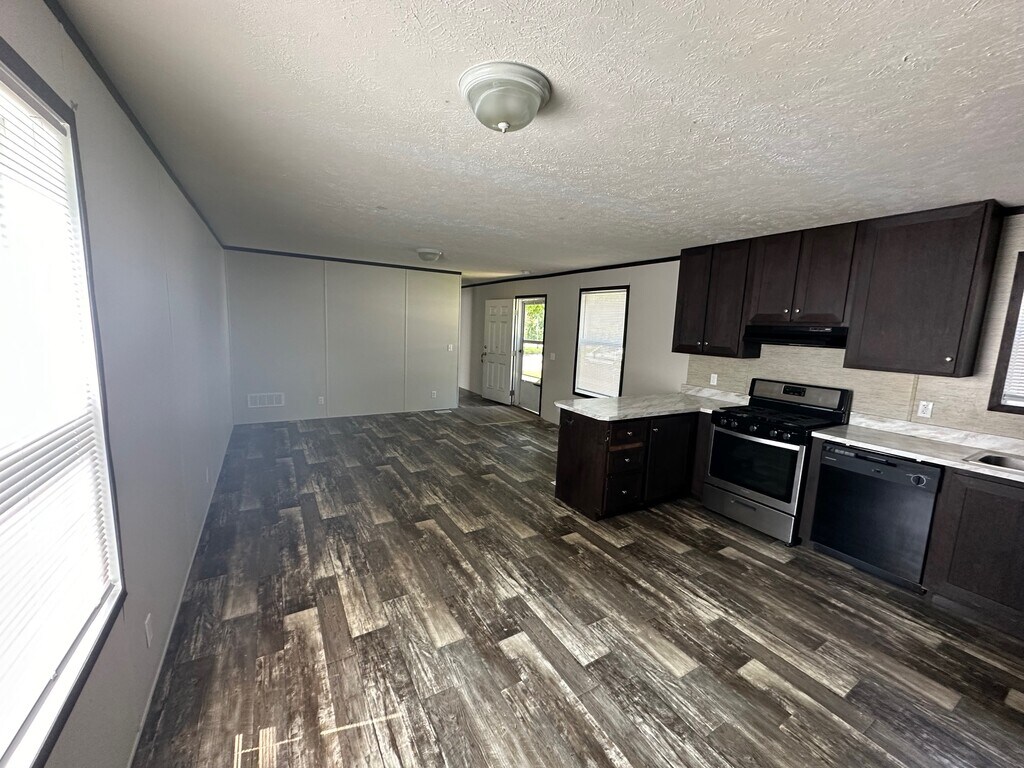 Take advantage of our limited-time Tax Season Special on this beautiful 2019 Clayton 3 bedroom, 2 bathroom home. Featuring a spacious open floor plan, this home offers a modern kitchen with island seating, dark cabinetry, and black appliances that flow into the main living area. With vinyl plank flooring, comfortable carpeted bedrooms, central air, and a private primary suite with attached bath, this home is ready for you. • 2019 Clayton model • Open-concept living and kitchen area • Kitchen island with seating space • Dark cabinetry with modern countertops • Black appliance package • Vinyl plank flooring in main living areas • Carpeted bedrooms • Private primary suite with attached full bath • Second full bathroom with tub/shower combo • Washer/dryer hookup area • Central air conditioning • Private driveway • Move-in ready condition