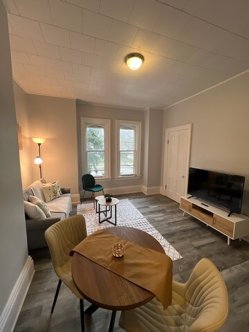Enjoy peaceful, comfortable living in this recently renovated and fully furnished 1-bedroom, 1-bath apartment, located in a charming Victorian triplex. Perfect for those seeking a quiet and convenient space to call home. Features: Fully furnished for a move-in ready experience Equipped kitchen with everything you need Separate private entrance 1 parking space in driveway All Inclusive: All utilities included (heat, hydro, water) WiFi included This cozy apartment offers a blend of historic charm and modern comfort in a friendly neighbourhood.