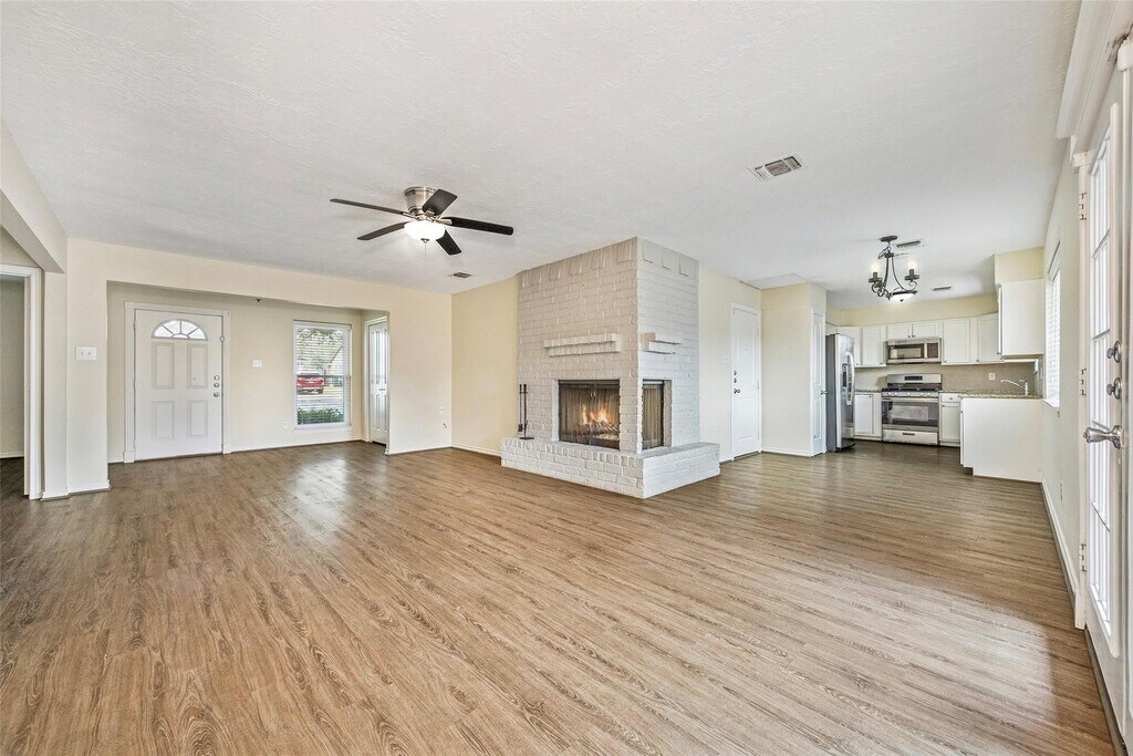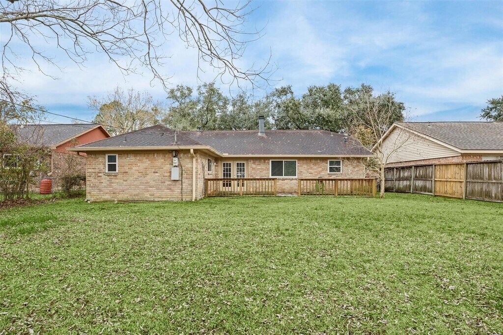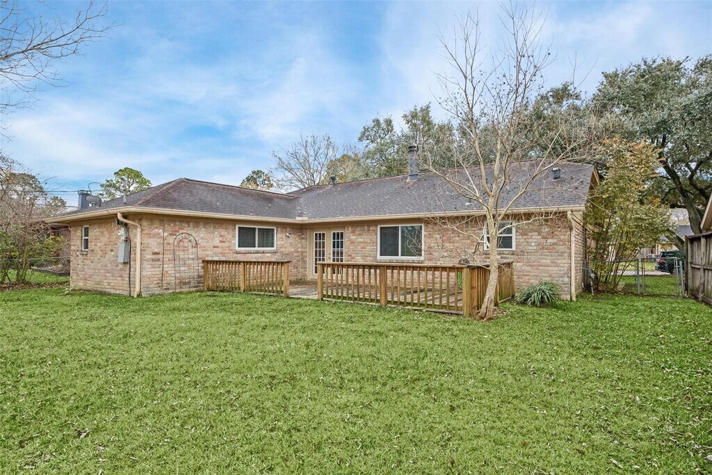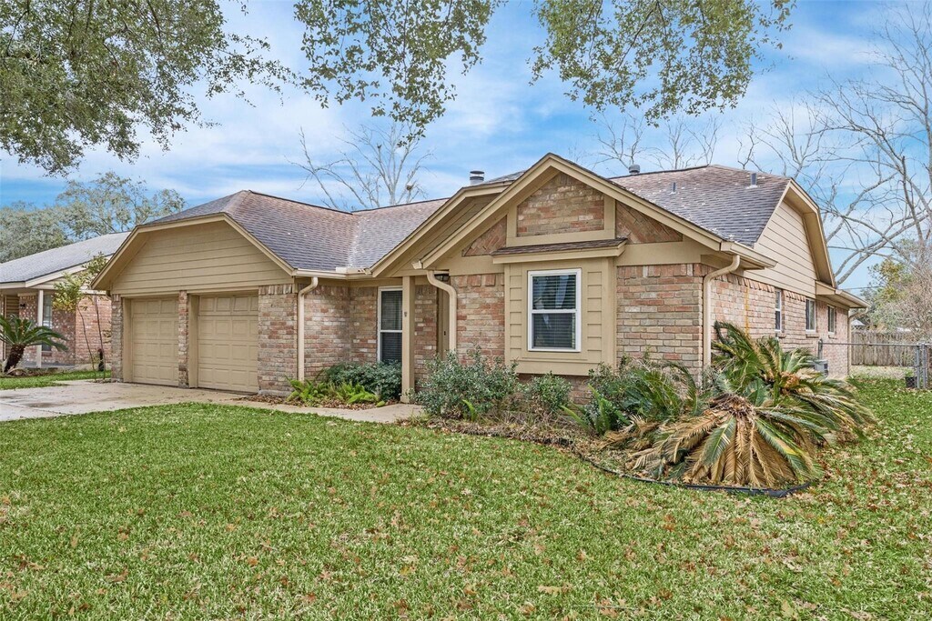 Look no further for your perfect lease home! This 3 bedroom,2 bath one story brick home in highly sought after Friendswood ISD is remodeled and move in ready. From the minute you walk in the front door,the open concept draws you in with a clear view of the huge back yard. The large living room has plenty of space for the entire family to enjoy the double sided fireplace that also opens to the dining room for a cozy dinner. The light bright kitchen offers granite counter tops,stainless steel appliances and white cabinets. Laminate wood look flooring makes for easy cleaning and upkeep. Enjoy the updated primary bath with granite countertops and custom tiled walk in shower. 2 secondary bedrooms share the hall bath with a shower/tub combo. Other features of the home include double pane windows,2" blinds throughout,updated fixtures,full gutters and a double wide driveway to the 2 car garage. Washer,dryer and refrigerator are all included. Located near schools,shopping and dining. MLS# 34828339