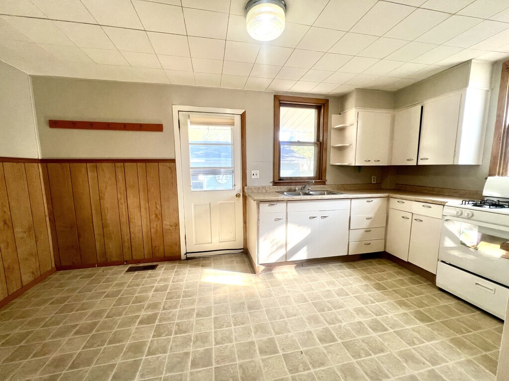 Cute 2 bedroom one bath home, newly remodeled bathroom. Large 2 car detached garage. Main floor laundry