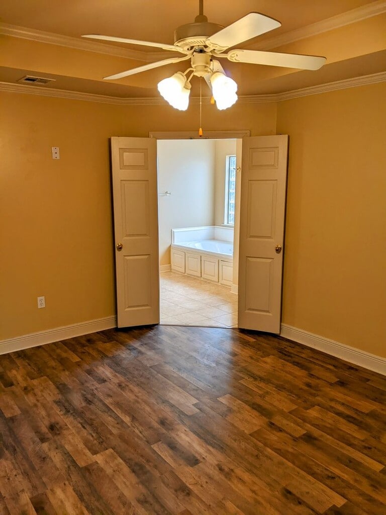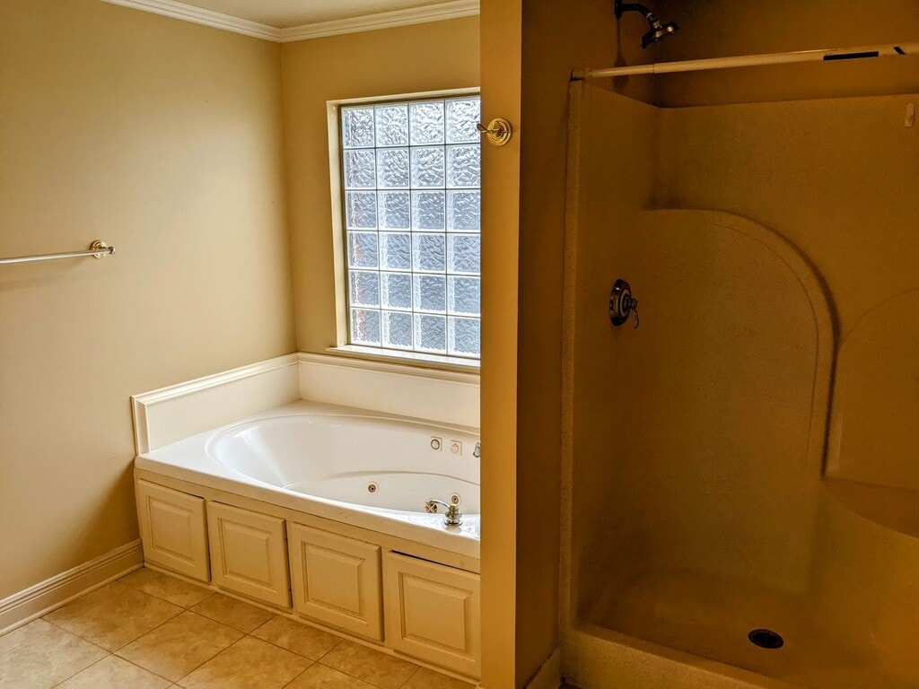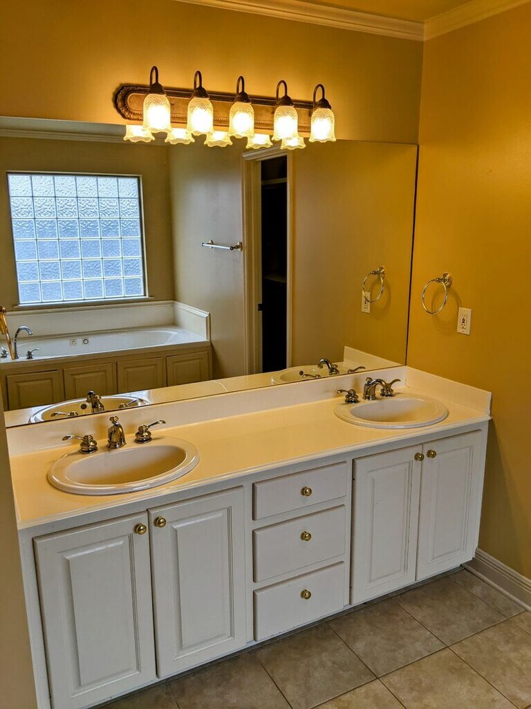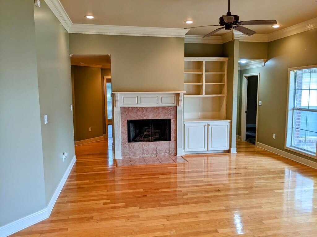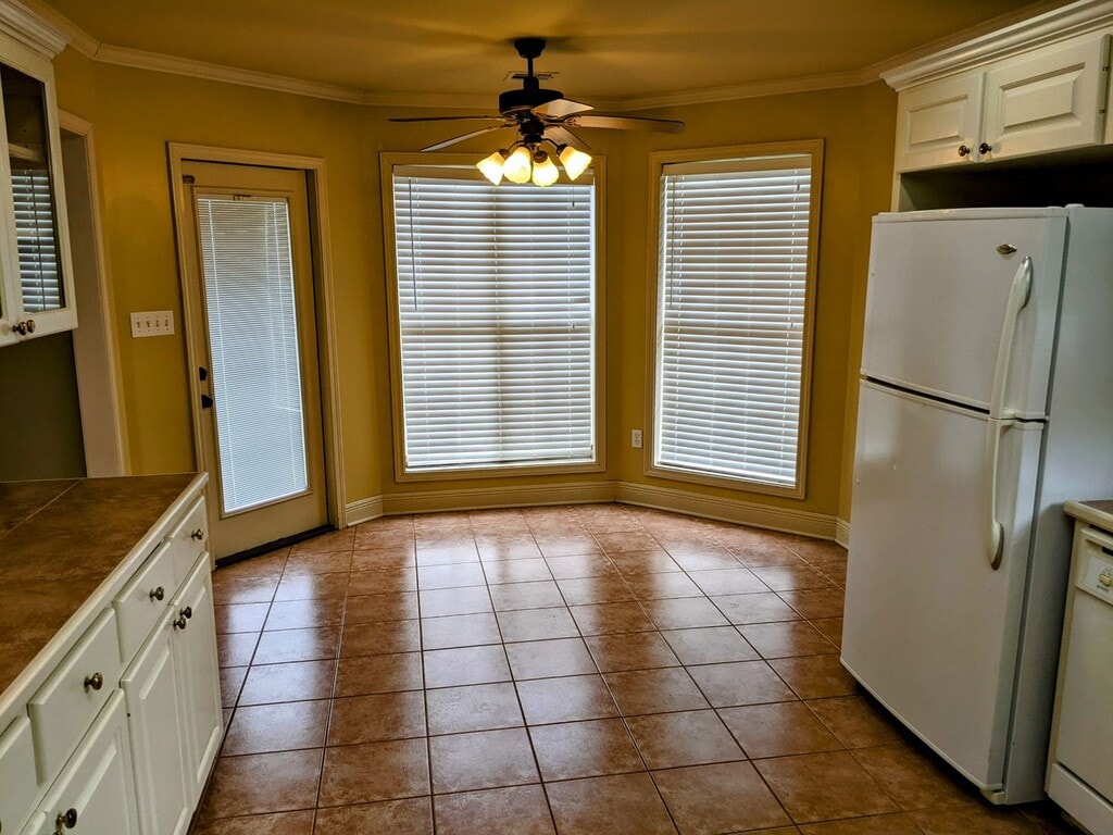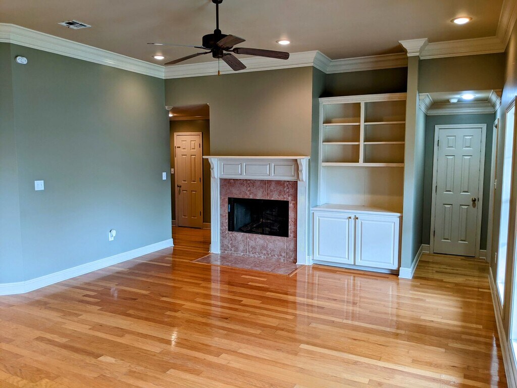 This Spacious Home Features 3 bedroom 2 baths, foyer, living room with wood burning fireplace, formal dining, kitchen with breakfast area and lots of cabinets!! Primary bathroom has a whirlpool tub and separate shower! There is Wood and Ceramic Tile flooring with no carpet except one closet. This home lets in a lot of natural light! There is double and triple crown molding that really gives this home a beautiful touch! The backyard has a spacious covered patio and is fenced in! There is also a lake in the subdivision!