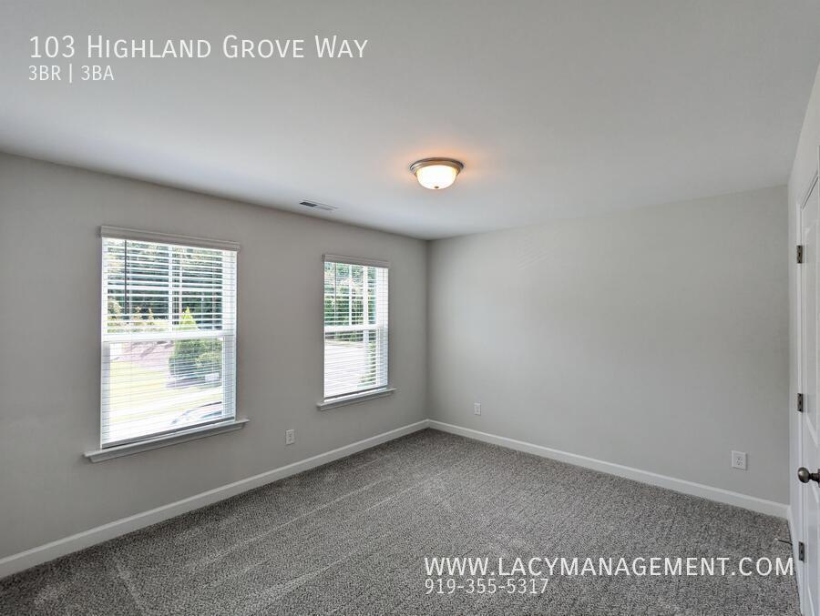 Welcome to your new home at 103 Highland Grv Wy! This stunning 3-bedroom, 3-bathroom boasts a spacious 2,278 square feet of modern luxury living. With 2-car garage, Residential Single-Family in the Highland Forest Community, where parking will never be a problem. This home combines luxury, comfort, and convenience. Step inside to an inviting open-concept layout filled with natural light and the kitchen features with stainless steel appliances, custom cabinetry, and a island perfect for meal prep and casual dining provide the perfect space for entertaining. Three spacious bedrooms provide ample room for family, guests, or a home office. Three beautifully appointed bathrooms ensure comfort and privacy for everyone with a luxurious bathroom with a soaking tub and walk-in shower. Located in a prime area of the Highland Forest community, this home provides easy access to top-rated schools, shopping, dining, and recreational facilities. With its elegant design, premium features, and ideal location The list of nearby hospitals are AFC Urgent Care Raleigh, UNC Healthcare and Meso & Beyond Medical Center The list of nearby schools are Lincoln Heights Elementary, Fuquay-Varina Middle and Wake Nc State Univ Stem Early College High School Schedule an online showing at: . Submit your application online at: Resident Benefits: **Get over $100 in monthly benefits for just $49.95 with our Resident Benefits Package! Enjoy valuable services with the flexibility to customize or opt-out *** Application Criteria: a) Gross household income of at least 3 times the rent b) A credit score of 650+ is preferred; we are happy to discuss your situation if your credit score is lower c) No evictions in the last 5 years d) A one-time pet fee of $300 per pet applies. An additional deposit may be required for multiple pets. No monthly pet fee; pet screening is required after application approval: $30 per pet. e) One-time admin fee of $250 required to pay after signing the lease.