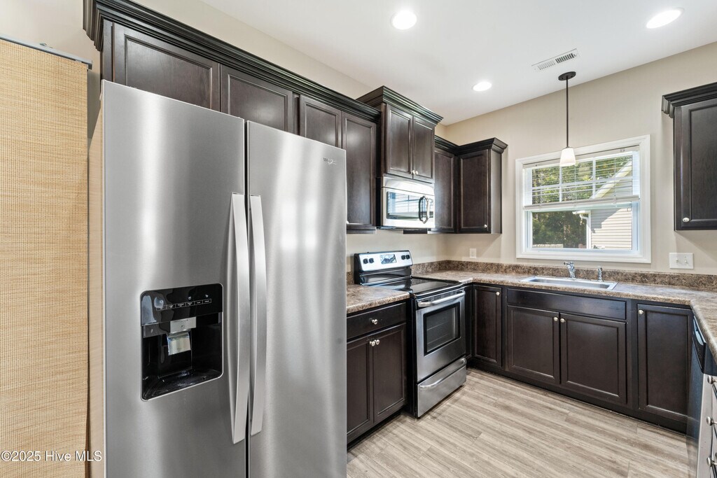 Welcome to 103 Nicolas Andrew Court, a beautiful 4-bedroom, 2.5-bath single-family home located in the desirable neighborhood of Aragona Village in Jacksonville, NC. Tucked away on a quiet cul-de-sac, this property offers both privacy and convenience, along with plenty of space for comfortable living.As you arrive, you'll be greeted by a roomy front porch, perfect for relaxing with your morning coffee or greeting neighbors. Inside, the home features a well-appointed kitchen with sleek stainless steel appliances and ample cabinetry, opening to the main living spaces for an inviting, open feel.The master suite is located on the main floor and is truly a retreat. It boasts abundant natural light, private access to the back deck, and a spacious en-suite bath with dual vanity sinks and a HUGE walk-in closet. Upstairs, you'll find three generously sized bedrooms and a full bath, offering flexibility for guests or a home office.The fenced-in backyard and deck provide an excellent outdoor space for entertaining, barbecues, or simply enjoying the Carolina sunshine. A two-car garage adds convenience and additional storage.Close to shopping, dining, and Camp Lejeune, this home is ready for you. Schedule your showing today at 103 Nicolas Andrew Court!