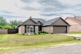 Beautiful Custom 3-Bed, 2-Bath Home with Upgrades Throughout! This well-maintained custom home features an open floor plan with trey ceilings in the living room and primary suite, plus a cozy wood-burning fireplace. Brand new carpet in the bedrooms and wood-look tile in main areas offer both comfort and durability. The kitchen includes granite countertops, custom cabinets, stainless steel appliances, walk-in pantry, and a convenient trash pull-out. The spacious primary suite offers a barn door entry to the bathroom, featuring dual sinks, a garden tub, decorative tile shower, and walk-in closets. Secondary bedrooms also include walk-in closets. Exterior highlights include full rain gutters, covered front and back porches, and a pergola—perfect for outdoor relaxation. Don’t miss this move-in ready home—schedule your showing today!