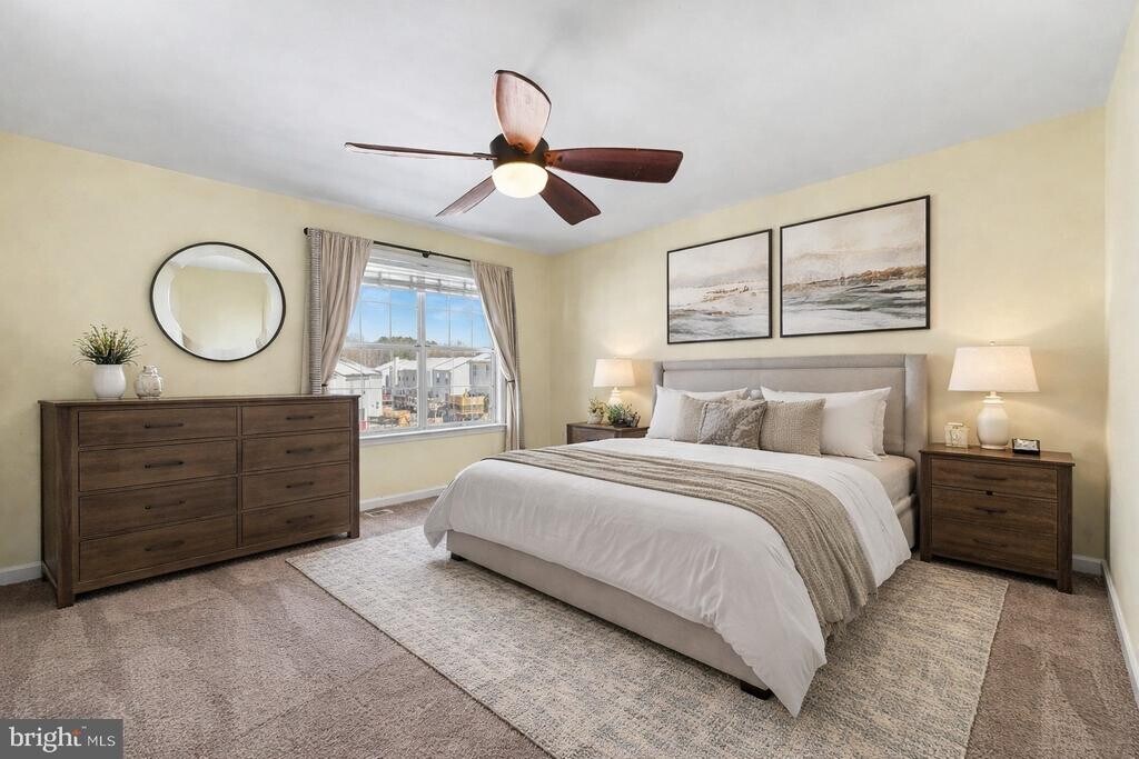 Available immediately. Beautiful and nicely appointed 3 level townhouse style condo. Two assigned parking spaces. Two primary suites - bedrooms with attached bathrooms - on the upper level. Separate Dining room, kitchen (with pantry) and family room on main level. Generous Sized living spaces. Tons of storage space! Sliding Glass door to a deck. Lower Level features another half bath, laundry room and an enormous rec room. Walk out sliders to the fully fenced back yard. Tot lot is just beyond the fence gate. Very well maintained and easy to rent. Extra Bonus Storage available in the attic.