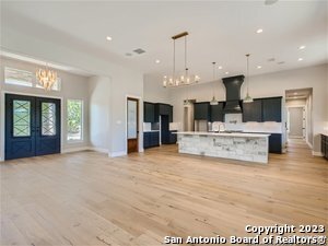 Rent includes Refrigerator, water and sewer as property is on well and septic. Tenant will just need to cover electricity and maintain interior and exterior. Very energy efficient home with low utility bill. Can provide upon request. Propane will need to be refilled at tenant expense as needed. Home is on 4 acres and horses allowed. Rare rental opportunity for New Construction on acreage with space for RV, Horses and Boerne School District. Another amazing custom home build by Odom Heritage Homes. This plan has so much to offer starting with the master split from rest of house with access to the oversized patio to enjoy the privacy of the backyard. The master bath offers that WOW factor with designer subway tile spanning across an entire wall accenting both freestanding tub and enclosed shower. His and her vanities to top it off with front and backlighted mirrors and antifog feature. Across the house and also split from the other bedrooms is the mother-in-law suite with oversized shower. Quartz counters throughout as well as wood flooring, brick and ceramic Tile floors with no carpet. This home sits on a very wide 4.199 acres located on corner with plenty of space for pool, shop, garden or combination of all the above and so much more. House was built with tankless gas water heaters, spray foam insulation, pre-plumbed for water softener, and metal roof. Lots of designer grade lighting, plumbing fixtures and stainless-steel cafe appliances. This one truly flaunts an exquisite floorplan and design making it an Entertainers dream! You will have a unique experience the moment you follow the driveway through two large oaks as it wraps around to 3 car garage. Few other extras to note is a full in-house built-in speaker system, open floor plan, private office, iron doors, stained tongue and groove accents for porch ceilings and custom-made mantle that overhangs large corner fireplace. Sprinkler system was also put in to help grow and maintain landscaping. Many more features to come check out for yourself.