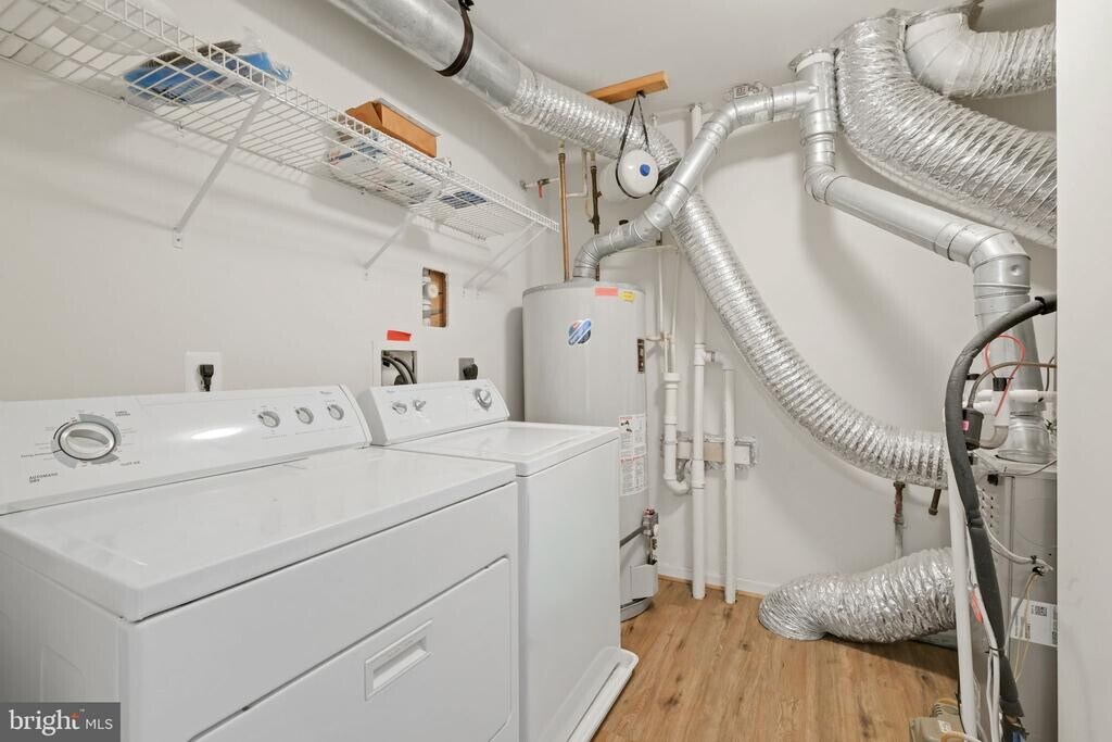 This well-maintained townhome offers a primary suite featuring dual walk-in closets and a private bathroom with a separate shower and soaking tub. Upstairs find two additional large bedrooms that share a full hall bath. Also located on this level are the laundry area and new heating and cooling systems. Enjoy carpet-free living with quality hard-surface flooring throughout the home. The main level showcases a bright, open layout where the kitchen flows seamlessly into the dining and living areas, along with practical storage space beneath the staircase. Outside, the front outdoor area includes a privacy screen and an open space ready for personalization—perfect for outdoor seating, gardening, or relaxing. Parking is easy with a private driveway plus ample nearby open parking. Ideally situated close to shopping, commuter routes, and just a short drive to historic downtown Frederick.