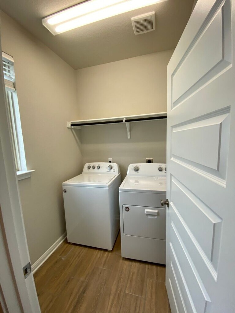 Stunning 3 bedroom, 2 bath, 1 story home in Jarrell for lease! This home offers so much from the built in tech center to the oversized backyard. Some of this homes amenities include: refrigerator, washer and dryer included, 2 car garage, fenced in oversized backyard, Grey tones throughout, sparkling white countertops, stainless appliances and much more!