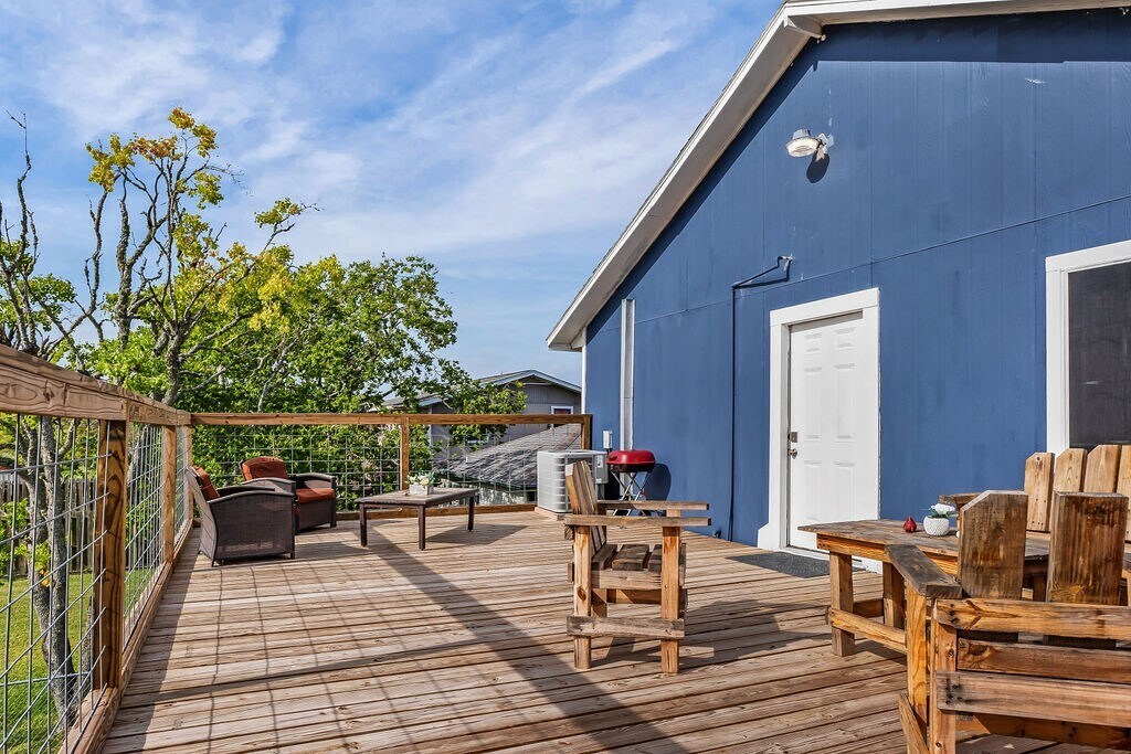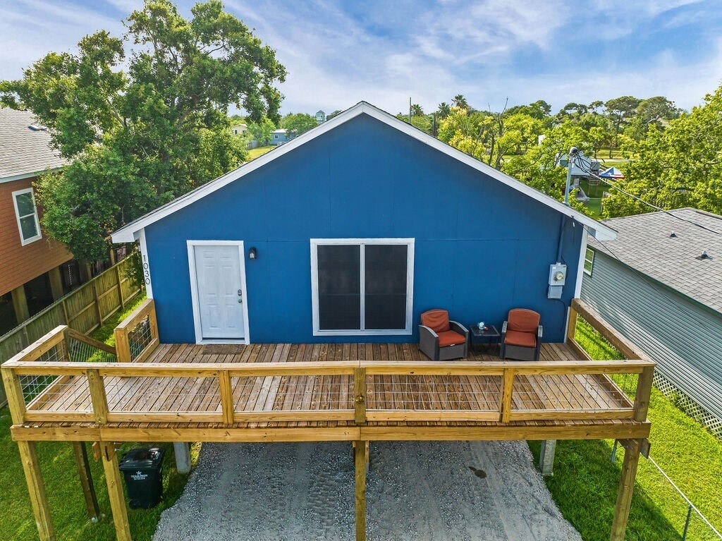This is a raised beach house style 2 bedroom 1 bath home with large deck/patio front and back as well as a wide driveway and plenty of parking under the house. Plenty of room for a boat or golf cart. MLS# 60671084