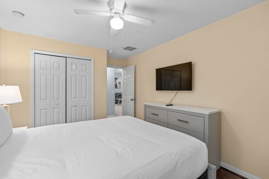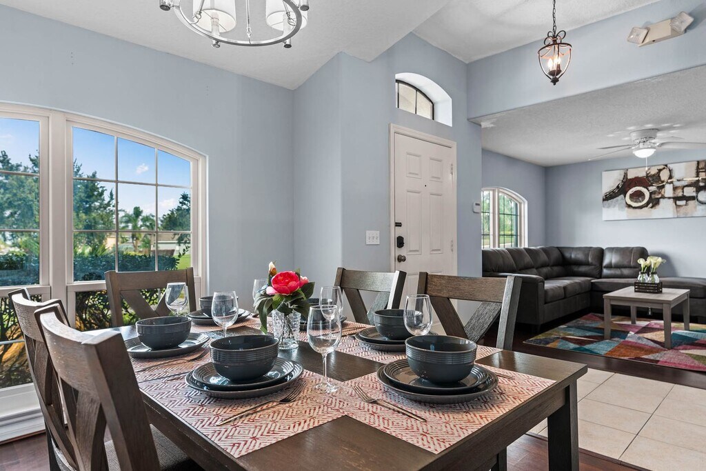 Large Beautiful Legacy Park Villa offers five bedrooms and three full baths in Davenport, FL, ideally situated near Disney. This fully furnished home features a large, full kitchen, central A/C, washer and dryer included, garbage disposal, and a two-car garage with off-street parking. Outdoor living includes a covered patio and a heated inground pool/spa combo with a safety fence; pool maintenance and pool/spa heater are provided as part of the rent. Additional conveniences include a sprinkler system, solar panels, and trash valet service. Furnishing terms are negotiable. $50.00 Application fee per adult $150.00 Non-refundable processing fee due at time of lease execution To apply online visit, or view our rental criteria, visit: To view more information or other properties for rent, visit: Connect with us!