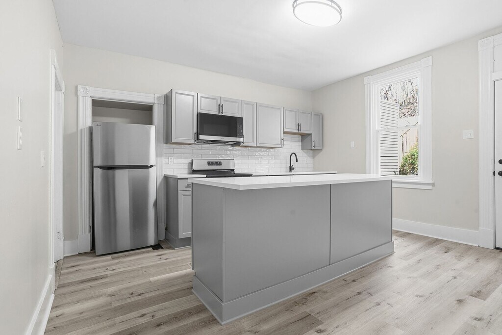 Newly renovated 3-bedroom, 1-bath in great location. Must see. Enter from the covered front porch into updated bright living room with new paint, floors, and finishes. Great kitchen - stainless appliances including dishwasher and a kitchen island. 3 bedrooms all with new carpet, fresh paint. Bathroom with new tiled shower. Central air. Laundry. Available May $1595/month, plus utilities. Security deposit $1595. Application fee $30/person, tenants must pass a background/credit check and provide proof of income. Email/text Ryan | Riva Ridge Real Estate Services | rivaridge.biz