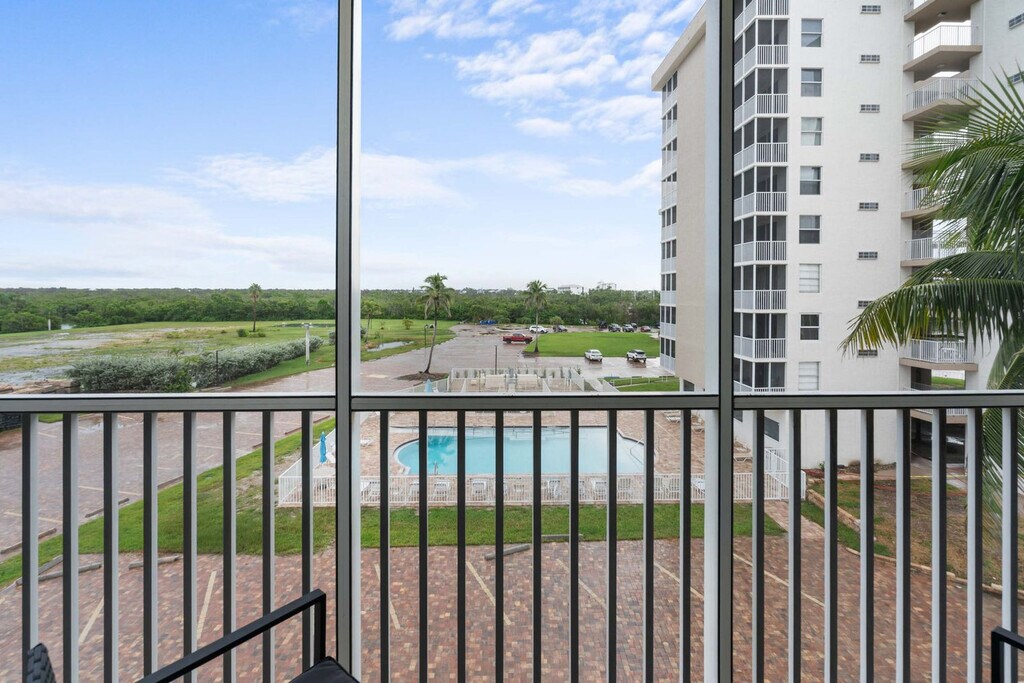 Feel at home in this 1-bedroom oasis on the 4th floor of the Bonita Beach & Tennis Club, boasting captivating views of the serene bay waters. This haven provides breathtaking sunrise vistas and unmatched proximity to the beach. The building has an elevator. This meticulously designed space comes complete with a fully equipped kitchen for culinary adventures and a cozy living area for relaxation. Beach essentials such as beach towels, chairs, bath towels, linens, and kitchen supplies are provided for a hassle-free escape. A starter set of toiletries and paper products is provided for your convenience upon arrival, but these items are not replenished. Parking is free with a pass from the office. Immerse yourself in the tranquility of the nearby shore, just a short walk from your doorstep, with the added convenience of charming cafes and shops within easy reach. Indulge in upscale shopping and dining just a 10-minute drive away, or venture into the lively ambiance of downtown for an evening of entertainment. Southwest Florida International Airport is conveniently accessible within 20 minutes, while downtown Naples, Naples Pier, and 5th Ave S are just 25 minutes away. Construction is in progress on the grounds, but noise is minimal. Smoking is not allowed at any time. [SI]