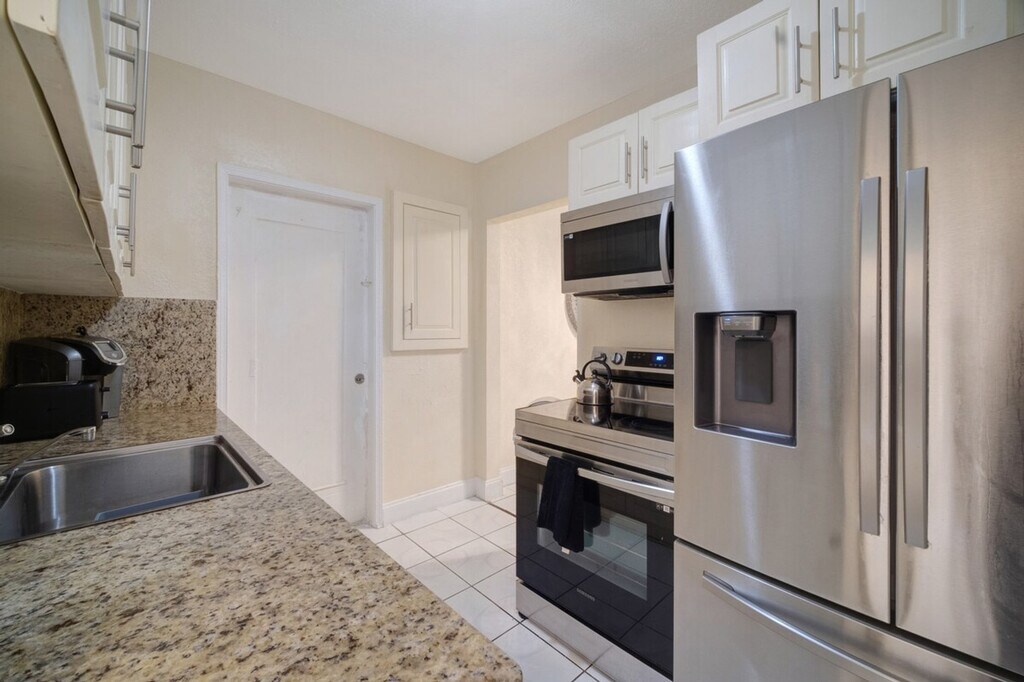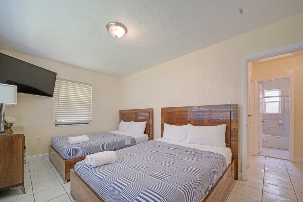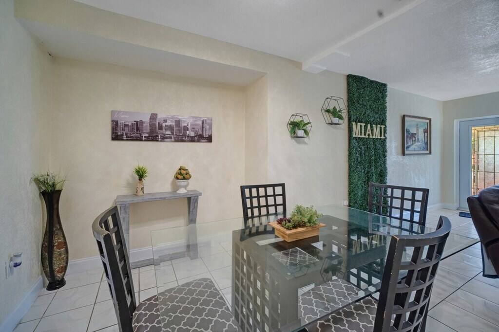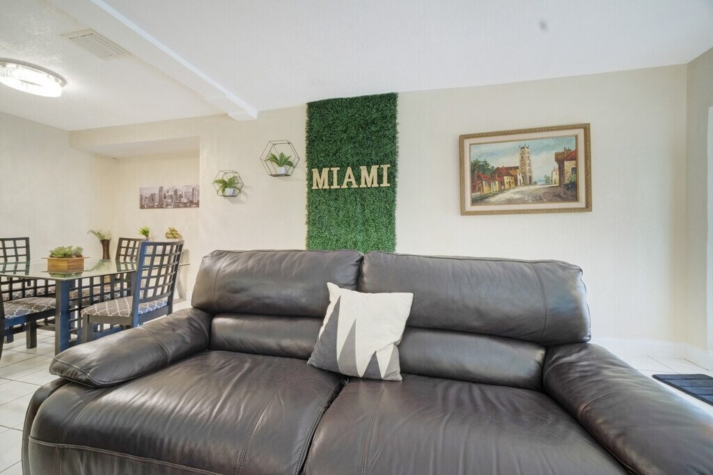 The advertised rate of $2,651/month is the lowest available price, based on a 30 day(s) stay with a move-in date of July 18, 2026. Rates vary depending on the duration of stay, season, and other parameters. For exact pricing and additional pricing components, please visit our website and enter your desired move-in and move-out dates. The rate is applicable when billed upfront; it can be higher if billed in multiple payments. Feel at home in this affordable Miami 2-bedroom, 1-bathroom home that comfortably fits your group. The fully stocked kitchen and dining area make meals easy, while the living room is perfect to unwind. One of the standout touches is the turf photo wall with the gold “Miami” sign, adding a fun local vibe and giving you a spot to capture memories with your group. Outside, there’s a small patio area for fresh air or a quiet morning coffee. Tucked in a quiet North Miami neighborhood, this home is about 13 miles from Miami International Airport and under 8 miles to the beach, so you can get around easily while staying in a more affordable area. The neighborhood itself is calm and residential, giving you a more authentic Miami experience. This home shares a wall with two separate mother-in-law suites that have long-term tenants, and you may also share the driveway at times. The house is completely private to you and your guests. [SI]