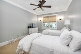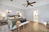 Coastal Cottage in the quiet neighborhood of Village Oaks! Close proximity to the main village and pier area where there are plenty of restaurants and shopping available. This beautifully built home offers an open floor plan area of the living room, kitchen, and dining room with tons of natural light. Tall wood ceilings, custom cabinetry and lighting are just a few of the many upgrades. The gourmet kitchen has stainless steel appliances, and a huge island with commercial grade cooktop. The primary bedroom is located downstairs and is large enough to accommodate a sitting area or small office to the side. The custom closet is fabulous, and the bathroom is spa like with a very large tiled shower, and dual vanities with cultured marble. The bonus room and 2 additional bedrooms are located upstairs. The laundry room has ample storage with cabinets and a sink. The home is being rented furnished. The mature landscaping gives this home curb appeal that is aesthetically pleasing. This is the perfect location and quintessential island living!