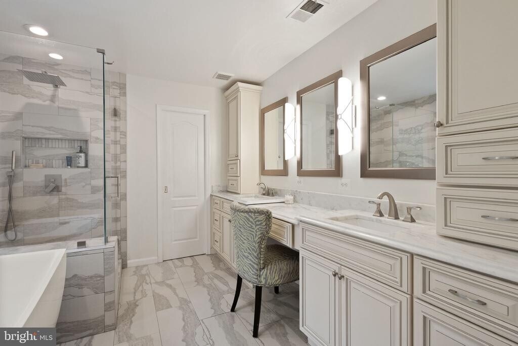 Nestled in the serene Bear Creek subdivision, this colonial estate offers a classic brick front, double-door entry with two-car garage. Step inside to find a thoughtfully designed main level enhanced with rich wood flooring and featuring an open, eat-in kitchen that’s perfect for family meals and gatherings. With its barn door pantry, large island, and plenty of counter space, the renovated gourmet kitchen is the heart of the home. The spacious layout flows easily into the family room, boasting a fireplace and built-in shelving, creating a comfortable space for both everyday living and entertaining. Walk out to the screened-in back porch (built in 2024) or leave the sliding door open to enlarge the space. The formal dining room leads into a cozy sitting area—ideal for relaxing with a good book. A dedicated home office, powder room and separate laundry room round out the main level. Upstairs, there are four bedrooms, including a large primary suite with a sitting area, walk-in closet, dressing room, and luxurious primary bath, renovated in 2018. The other three bedrooms share an updated hall bath with tub/shower combination and double vanity. The fully finished basement features brand-new flooring and includes a bedroom, full bath, wet bar, bonus room, large rec space and game area. The exterior of the property is equally impressive, set on a generous 1.3-acre lot, offering a tranquil retreat surrounded by mature trees and thoughtfully landscaped grounds in a picturesque setting. Landscaping service is included in the rental fee. The property is ideally located within a short distance to commuter rail stations and major transportation routes, making it easy to access nearby amenities and attractions.