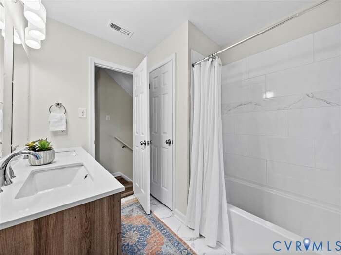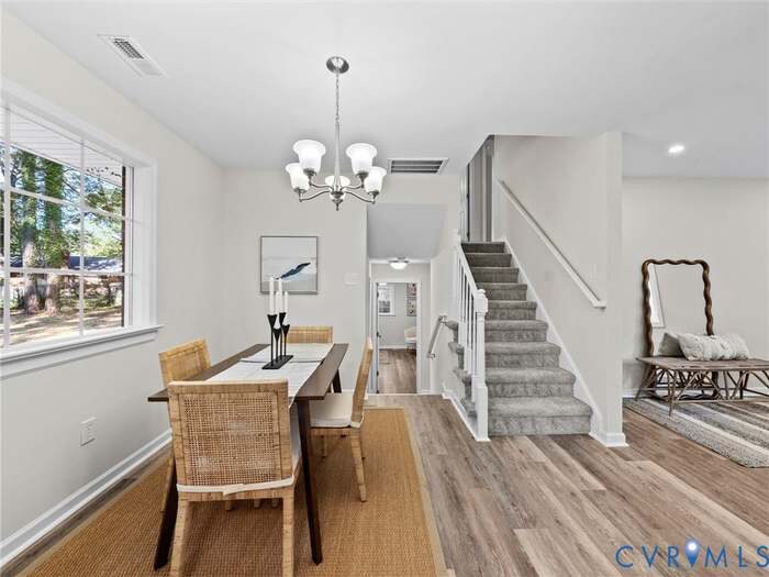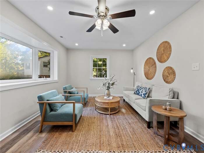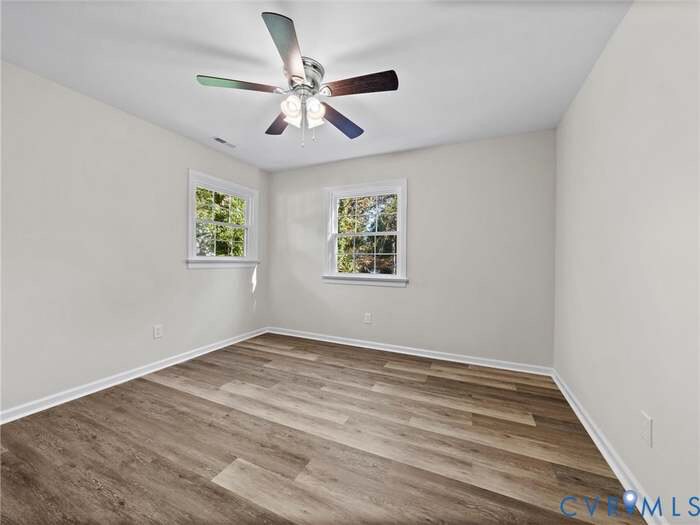 Property Id: 2363877 COMPLETELY renovated Bon Air home on a cul de sac lot with a detached garage!! Prime location and turn key! An incredible floor plan that includes large open living spaces, 3 bedrooms, 1 full and 1 half bath, mud room, a bedroom and family room on the lower level, and 1622 square ft. The main living room is located at the entry of the home and has a bay window that floods the space with gorgeous natural light. The kitchen is a stunner with white shaker cabinetry, quartz tops, stainless appliances, and a built in pantry. There is exterior access from the kitchen and the space overlooks the large back yard. The upper level of the home includes 3 bedrooms and the full bathroom, all of the bedrooms have LVP flooring, ceiling fans for comfort, and closets. The bath has been tastefully redesigned with a Scandinavian vibe. The lower level of the home offers no stair entry through the mudroom and includes the home office/flex space with half bathroom attached and a closet, a cozy