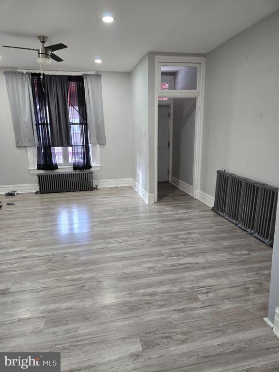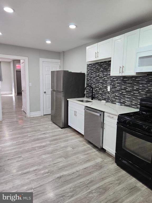Nice spacious 1304 sq ft 3 bedroom 1.5 bath rowhome for rent. Straight thru, with large living room and dining area. Updated flooring throughout with recessed lighting on first floor. Nicely appointed kitchen with stainless steel appliance refrigerator, diswasher, and range/stove. Laundry room adjacent to kitchen with washer and dryer and first floor powder room. 3 nicely sized bedrooms upstairs and renovated bathroom. Fenced yard in back and unfinished basement. Rent includes water with a cap to $100 per month. Any overage is tenant responsibility. Close to Widener University, easy commute on major routes (Chester Pike, I-95) Tenant pays all other utilities.