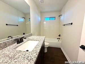 Gorgeous 3-bedroom, 2.5-bath home located in an exclusive gated community featuring a basketball court, dog park, and a children's playground just steps away. This home offers an open floor plan with high ceilings, wood-look vinyl flooring on the main level, and a bright, modern kitchen with granite countertops and stainless steel appliances. Enjoy a private, low-maintenance backyard perfect for relaxing or entertaining. The spacious primary suite includes a double vanity and ample storage. Conveniently located with easy access to Loop 1604, US-90, and I-410, and just minutes from Lackland Air Force Base, SeaWorld, schools, shopping, and dining. Be sure to check out the video tour to see the full floor plan. $1,355 for an 18 month lease or $1,395 for a 12 month lease.