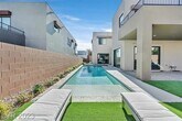 Nestled in the exclusive gated community of Oluna in South Summerlin, this stunning residence offers a perfect blend of modern design and serene desert beauty. Surrounded by scenic mountain views, green parks, and endless walking trails, the neighborhood is designed for both relaxation and recreation. Step inside to discover an airy open-concept layout with soaring ceilings and abundant natural light. The primary suite, conveniently located on the first floor, features direct access to the courtyard and sparkling pool. Upstairs, a spacious loft and generously sized bedrooms provide comfort and versatility, along with a balcony ideal for soaking in mountain vistas. Outdoor living is effortless with multiple spaces to entertain or unwind — from the private courtyard and covered patio to the expansive side yard with a luxurious pool and spa. This home is truly a retreat built for modern living.