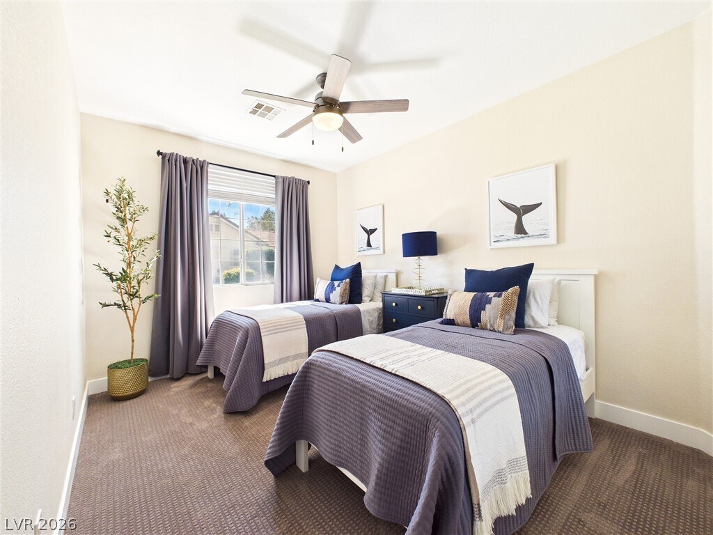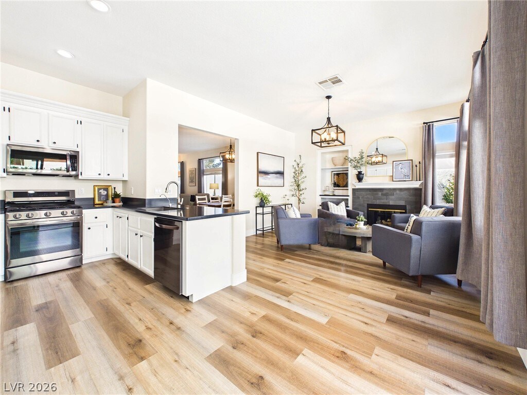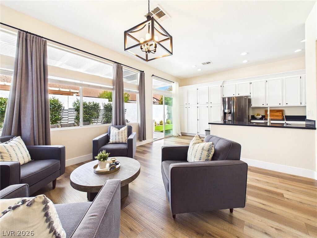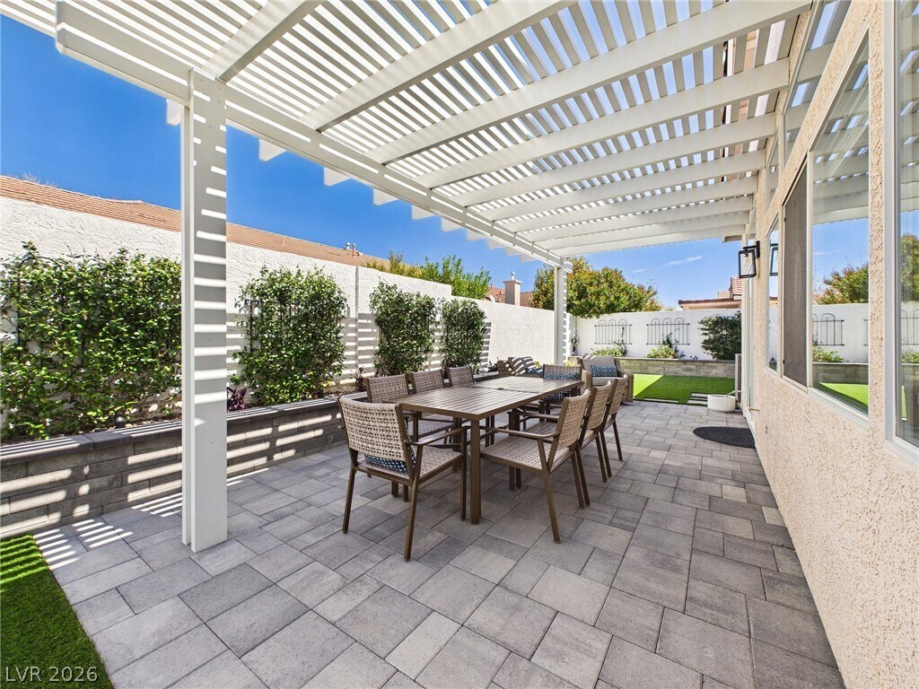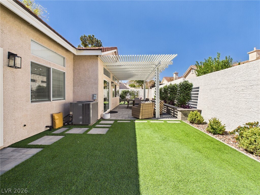 Beautiful fully furnished 3-bedroom, 2-bath home in desirable Summerlin North offering comfort, style, and effortless living. Step into a spacious, natural light-filled family room that flows seamlessly into the inviting living area with a cozy fireplace and open-concept kitchen featuring stainless steel appliances and ample space for cooking and entertaining. Just off the living room, a sliding door leads to a private backyard retreat complete with two patios, outdoor furniture, low-maintenance landscaping, and lush turf for year-round enjoyment. Each bedroom is generously sized, while the primary suite offers a spa-like bathroom with dual sinks, a separate soaking tub, and a walk-in shower. A perfect blend of elegance and convenience, ready to welcome you home!