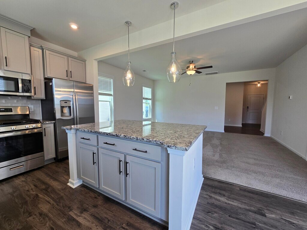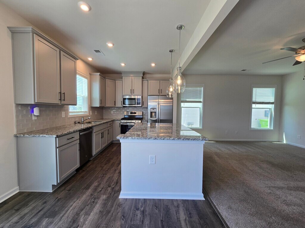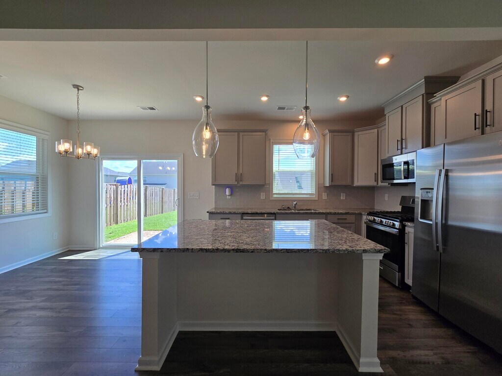Welcome to the community of Savannah Wood,we are pleased to present this stunning 3-bedroom,2.5-bathroom,2-story home which is just over a year old and like new! Located in the charming town of Hopkins,SC it's just a short commute to our state capital of Columbia,Camden or Sumter. Perfect for anyone looking to be near Fort Jackson or Shaw AFB and within minutes Columba. This home boasts a spacious layout with a welcoming foyer,convenient half bath on the main level,large great room with walk in storage closet under the stairs and features a beautiful open floor plan with a spacious kitchen with a large center island,gas range,all stainless steel appliances,beautiful painted cabinets,subway tile backsplash and granite countertops complete with a storage pantry and dining area. Upstairs you'll enjoy the convenience of having all the bedrooms located on the 2nd floor along with the laundry room and a spacious 2nd full bath with a double sink vanity and granite countertops. The primary bedroom features a huge walk in closet and en-suite bath with separate soaking tub,double shower,double sink vanity,granite countertops and water closet. Sliding glass doors off the dining area bring you to a rear patio and an easy to maintain and spacious backyard that offers just the right amount of space and security with a wood privacy fence creating the perfect outdoor space for relaxation or entertaining. The attached single car garage is equipped with a Tesla charging station. This property is also pet-friendly,welcoming dogs only up to 70 lbs. with owner approval. Experience the perfect blend of comfort,convenience,and style at 1032 Crescent Moon Loop.