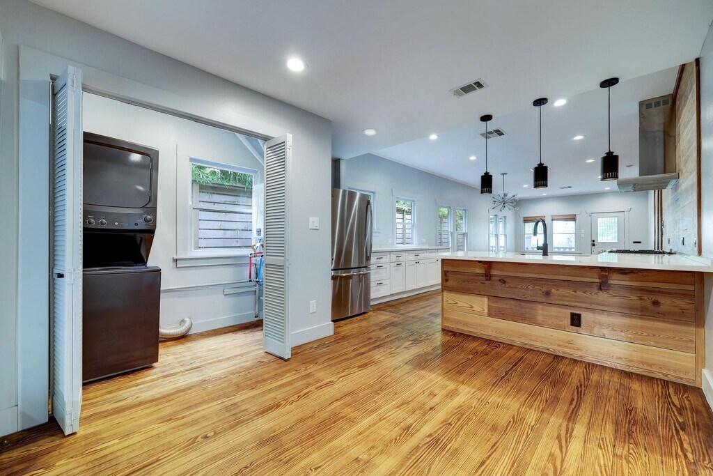 Welcome to 1032 E 6 1/2 Street; a quintessential Heights Bungalow offering all the updates and an unbeatable location. Remodeled in 2019,this 2 bed/2 bath home offers an open layout,freshly refinished hardwood floors,updated kitchen and bathrooms. The primary bedroom is complete with a walk in closet and ensuite bathroom. A small flex space at the back of the home is perfect for an office,play area,or exercise space. Storage abounds with a laundry/storage closet (washer/dryer included) as well as a large hall closet/pantry off the kitchen. Enjoy your morning coffee on the front porch or relax on the large covered back porch. Fully fenced front yard with automatic driveway gate. Perfectly situated in the heart of the Woodland Heights; steps from the restaurants on White Oak and two blocks from the hike and bike trail. MLS# 32599500