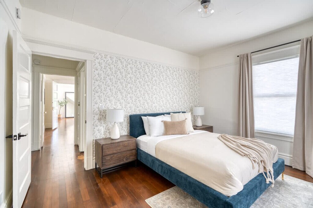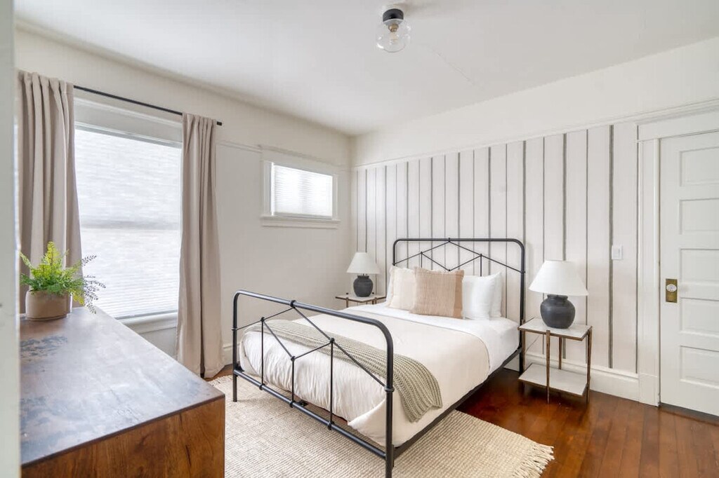 Welcome to this newly renovated home in the heart of inner SE Portland, perfectly situated for families eager to experience everything Portland has to offer. This top-floor unit in the Buckman neighborhood features three bedrooms and one bathroom, with a flight of stairs leading to the bedrooms and bathroom, offering elevated views and a serene atmosphere. Completely updated with new appliances, stylish furniture, and modern finishes, you'll enjoy a comfortable and contemporary stay. This recently renovated 3-bedroom, 1-bath home offers modern conveniences and tasteful decor for a stylish stay. The updated kitchen comes with brand-new appliances, ample storage, and full cookware for home-cooked meals. Each of the three beautifully appointed bedrooms has its own unique ambiance, including a kids' room with a twin bunk bed, whimsical teepee tent, and a desk space for study or creativity. The brand-new bathroom features top-tier plumbing, providing a tranquil space to unwind. Located in the heart of the Buckman neighborhood, this home offers easy access to all that Portland has to offer. Enjoy the vibrant local scene, with nearby attractions and convenient public transportation options to explore the city. The home is next to a local bar, and you may experience occasional noise, particularly on weekends. Earplugs can be provided upon request if you're a light sleeper. Quiet hours are between 22:00 and 8:00. [SI]
