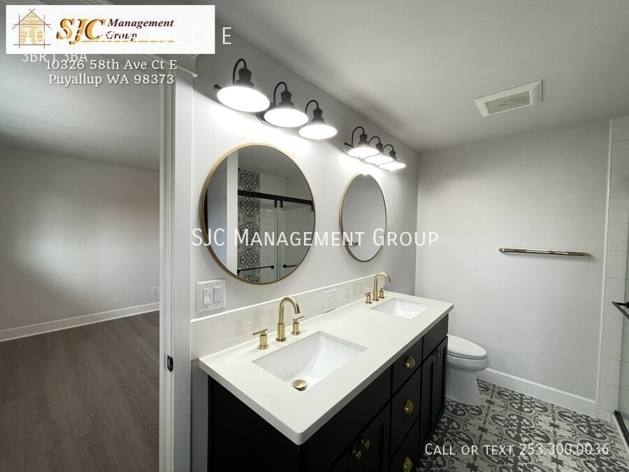 Beautifully updated 3+ bedroom home on more than 1/3 acre. Away from crowded neighborhoods, but with easy access to freeways, JBLM, shopping, restaurants, and more! The main level opens to a versatile open living space with plenty of natural light, beautiful hard flooring, the kitchen, and the large raised deck that can be accessed from the great room. Down the hall are the 3 bedrooms and the main bath. The primary bedroom has its own ensuite bathroom with a shower, double vanities and extra storage. The gold fixtures and hardware that you find throughout the home provide a subtle elegance. The fully finished basement expands your living space with a huge bonus room that can easily serve as a 4th bedroom or secondary living area. There is also a laundry room, and another bathroom with a shower. The 2 car garage can also be accessed from the basement level. Note--Parking is not allowed on the grass. Between the driveway and the gravel parking space in the front of the house, and the long gravel driveway with separate street access in the back, parking should never be an issue here! Shed is available for extra storage. Schedule a showing or take our virtual tour today! Pets [breed and size restrictions may apply] are allowed pet screening required, approved pets will incur a pet mitigation fee (between $150 and $350) at move-in + a monthly pet fee of $35-$75, max two pets. For more information or to set up a viewing please contact the leasing team at SJC Management Group today! Please note showings can be scheduled online at any time. After hours or weekends, showings must be scheduled and confirmed by our staff before the end of the business day. Our business hours are Monday-Friday from 9 am to 5 pm. We are closed for all major holidays. ADDITIONAL TERMS: Required $85 at move in and additional $35 per month Resident Benefit Package offers an array of advantages. With this package, you'll enjoy convenient benefits such as regular delivery of furnace filters and additional perks designed to enhance your renting experience. UTILITIES: Not Included - Septic $40 monthly DEPOSIT REQUIRED: $3150