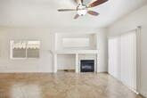 Beautiful, well kept, single story Summerlin home convenient to community center featuring parks, pools, sports fields and more; Inviting covered front porch; Tile throughout with Luxury vinyl plank flooring in guest bedrooms; Living room with light; Kitchen with Granite counters, breakfast bar, pantry, skylight to allow for natural lighting, stainless steel appliances including refrigerator and microwave; Family room with ceiling fan and light and cozy gas fireplace; Both guest bedrooms feature ceiling fans, lights and cable outlets; Full guest bath with skylight; Primary suite with ceiling fan, light, cable outlet, walk in closet, double sink, soaking tub and separate shower; 2 car garage with auto opener, entry to house, and storage cabinets; Backyard patio and synthetic grass; Convenient to schools, Aviators ball field, Downtown Summerlin, the 215, shopping, dining and much more! Rent includes sewer, trash and Resident Benefit Package!