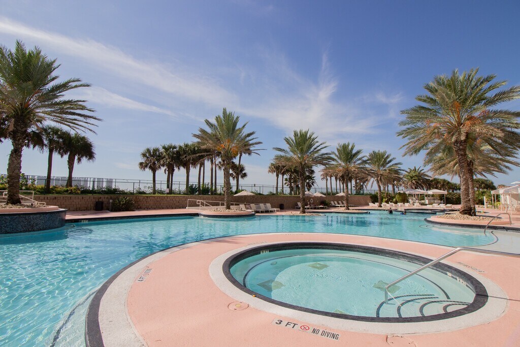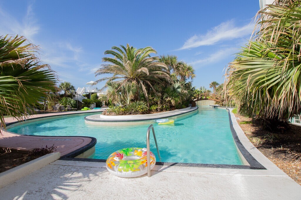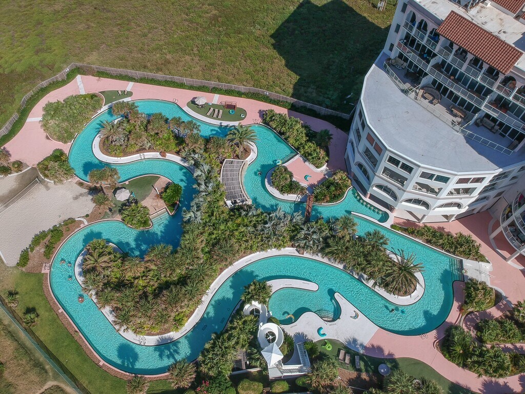 This destination property boasts $15M in resort-style amenities. Oceanfront with fabulous views of the 300-foot pool & vast Gulf of Mexico. The 750' moving water lazy river comes with floating tubes. Two hot tubs,beautiful palm trees & a swim-up bar complete the outside amenities. Indoor is a heated pool,jungle kids club,business center,24-hour concierge,state-of-the-art fitness center,game room,party room & cinema that seats 35. This condo is perfectly positioned by the elevator to make access a breeze. MLS# 91520827