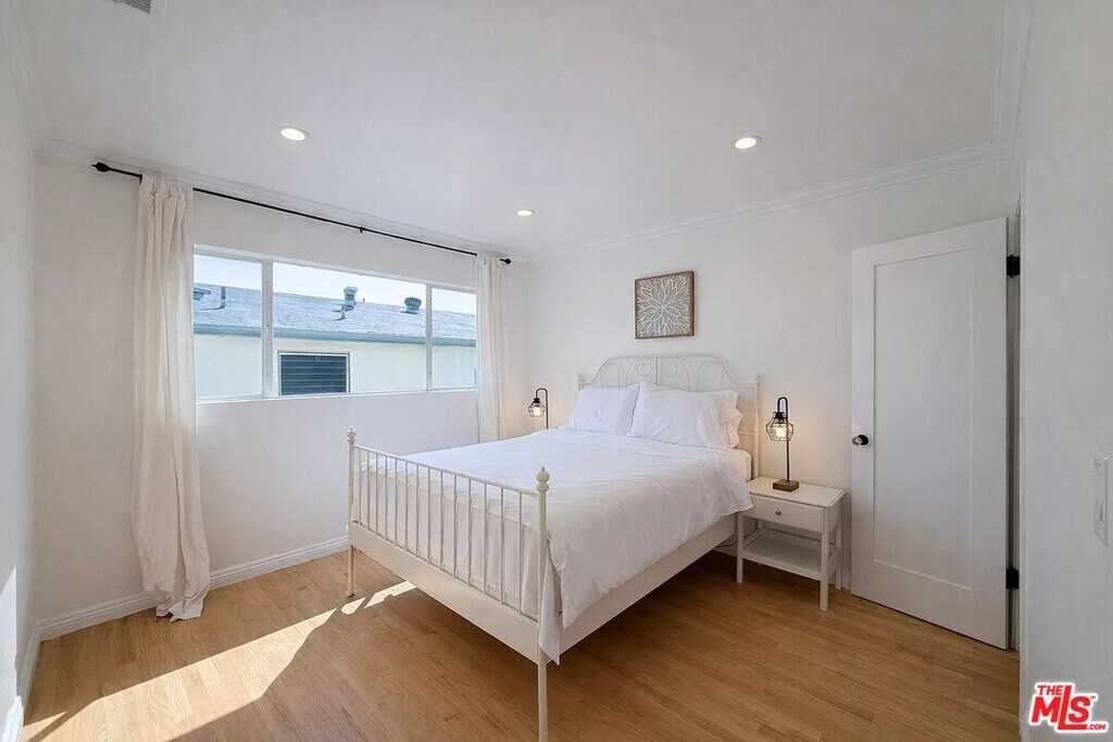 Gorgeous & bright upstairs 2 Bed/1 Bath at 20th & California Newly renovated kitchen with Calacatta marble countertops & glass front cabinetry Excellent cabinet storage All stainless steel appliances with gas range, dishwasher, and double sink Breakfast bar seating Upstairs corner apartment with no one above Central air and heat Pool Tumbled marble bathroom with shower tub combo French doors in living room open to private balcony West facing with lots of natural light and amazing closet space Washer/Dryer in unit One parking space included in covered lot Recessed lighting in every room Hardwood floors throughout Gated property Just four blocks to both Whole Foods and Trader Joe's Close distance to all the shops, cafes, and restaurants in Santa Monica. Water/sewer/trash included. Tenant responsible for gas & electricity. First month's rent + security deposit due on signing. 1 yr lease. Pet friendly. No smoking. MLS# 26654819