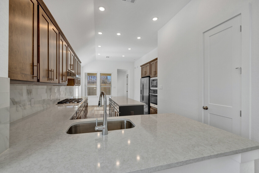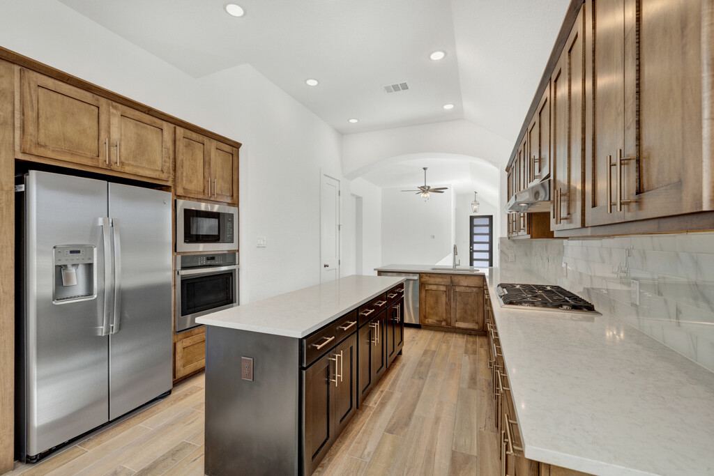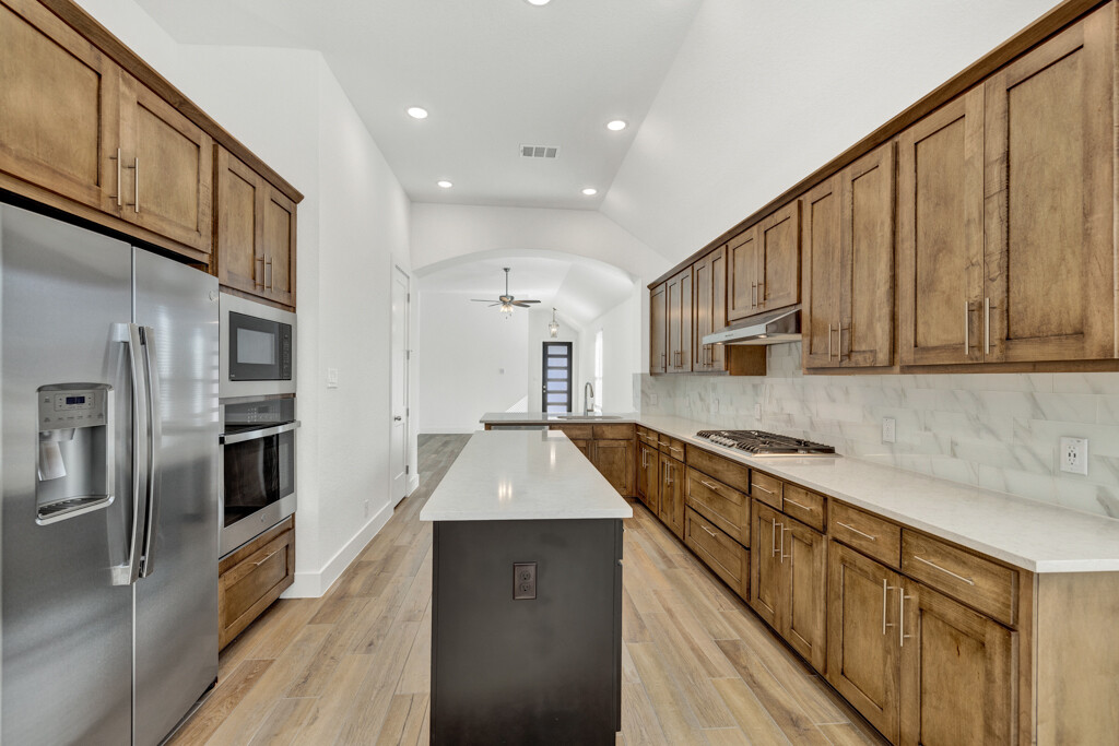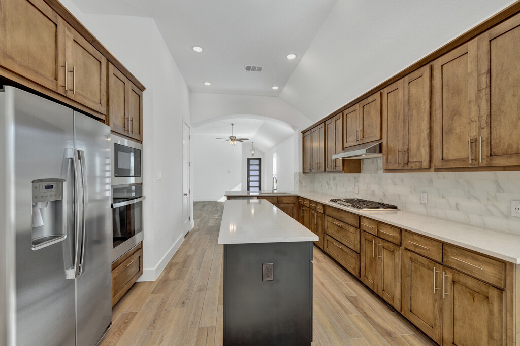 Live in GRUENE in a NEW Highland Home walking distance to Gruene in the niche community of Gruene Villages. This 3 bedroom 2 bath home has easy access to Loop 337 and FM 306. The home has many upgrades including brand new refrigerator, built-in stainless appliances, gas cooking, large kitchen island. The primary suite features carpet, vaulted ceilings, ceiling fan, large walk in closet, double vanities, and large walk in shower. Other features include tankless water heater, smart keyless entry, garage opener &; thermostat, sprinkler system, recessed lighting, fenced in back yard, extended covered patio, new washer, dryer and water softener for the home.