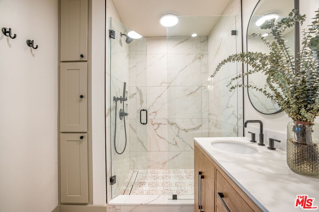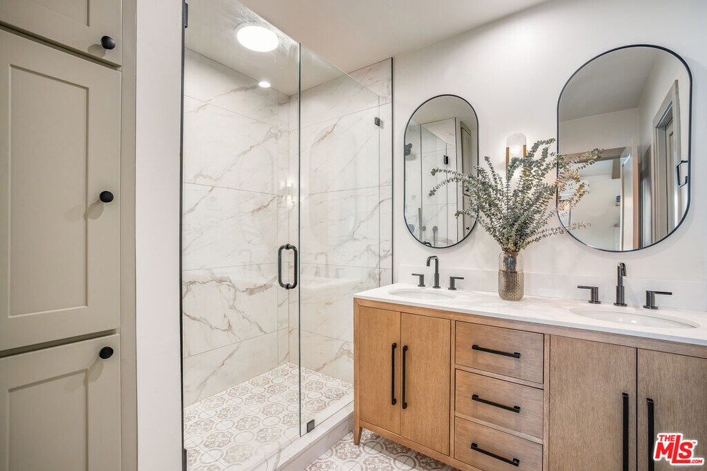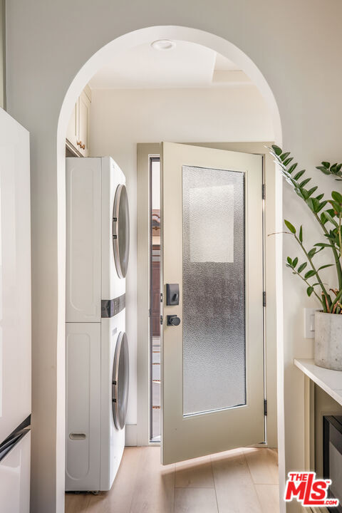 Welcome to Villa Galicia, a beautiful new construction, modern Spanish-style villas offering the perfect blend of luxury, Spanish design and privacy. This two-bedroom, one- bathroom gem is located in the front house duplex. Villa Galicia is the first of an exclusive new development of four resort-style villas being offered for lease. Each villa boasts impeccable finishes and thoughtful design details, giving each villa unique and individual charm, yet cohesive flow. Villa 1033 features a spacious, open-concept living area that seamlessly connects the kitchen, dining, and living spaces. Immediately you will be greeted with tall vaulted ceilings throughout with white oak beams. The dining area hosts a large island with counter seating and ample storage and the restored original built in china cabinet. The open concept kitchen is equipped with high-end Samsung appliances including a gas range with air-fry capabilities, a French door refrigerator with cube and nugget ice, and a purified water pitcher. The kitchen also offers ample storage. The living room is a true focal point, showcasing an oversized Spanish-style arched picture window with Spanish style fireplace that adds warmth and ambiance. Enjoy cinematic entertainment with the Samsung Frame TV and Sonos sound system, perfect for movie nights or unwinding after a long day. Both bedrooms are generously sized with walk in closets. The large central bathroom features a private water closet, large double vanity, marble sconce, linen closet, and an oversized luxurious shower with a tiled trench drain for a spa-like experience. The villa is equipped with smart home features, including Schlage electronic deadbolts for keyless entry that can be unlocked from smart phone, app, or Apple Watch. A LG washer and dryer tower is strategically located by the back door with ample storage surrounding it. Step outside onto your private front porch with traditional Spanish tile. It's the perfect spot for morning coffee or evening cocktails, offering a serene retreat in the comfort of your own home. The expansive backyard is perfect for outdoor living, featuring West Elm outdoor furniture, a gas fire pit, and a Blackstone grill all for common use. It's an ideal space for entertaining guests or simply relaxing and enjoying the beautiful surroundings. Villa Galicia offers the ultimate resort-style living with modern comforts and unparalleled privacy, making it the perfect home for those seeking both luxury and convenience in one of West Hollywood's most desirable locations, walking distance to many shops, restaurants and new Erewhon opening. MLS# 26638991