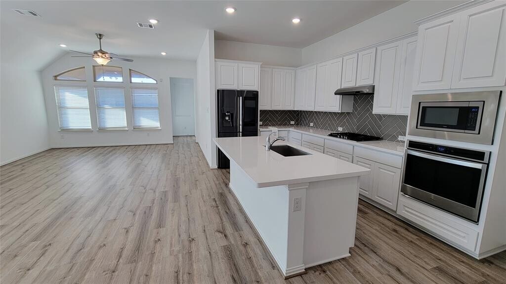 Don't miss out on this stunning property in the beautiful Sunfield community! The home is situated on a corner lot and has 4 sizable bedrooms, 3 full baths and a dedicated office/study. The open concept kitchen and living space make it perfect for entertaining guests. The kitchen features a grand island, stainless appliances, quartz countertops, herringbone tile backsplash, large walk in pantry with plenty of storage, and a Samsung washer and dryer! The spacious backyard has a covered patio and provides ample room for playing, gardening, entertaining and enjoying the beautiful sunsets! The Sunfield community is full of amazing amenities including two lazy rivers, park, junior olympic size pool, playground, walking and running trails, dog parks, amphitheater with live music, and so much more! Close by are a variety of coffee shops, grocery stores, retail shopping and restaurants, along with easy access to I35. **Please note that the back yard fence is in the process of being repainted** Check out this beautiful home and wonderful community today!