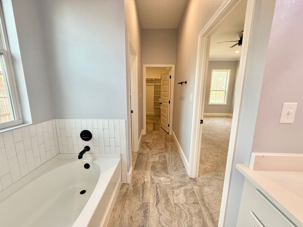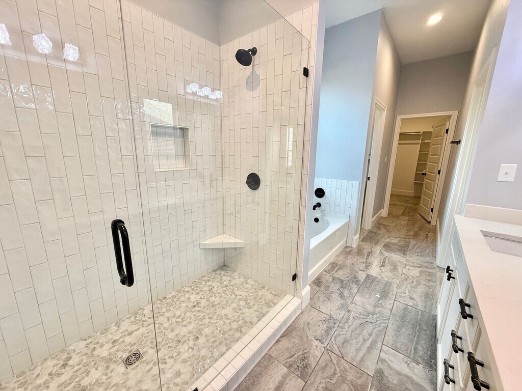 Step into a home designed for both relaxation and style. This stunning 4-bedroom, 2-bathroom residence offers a bright, airy atmosphere with abundant natural lighting flowing through every room. The living area is incredibly spacious and looks out into the covered patio. The modern kitchen is a chef’s dream, featuring sleek finishes and an open flow into the dining area. The primary suite is a true escape, boasting a huge walk-in closet with built in shelving and a luxurious en-suite bath complete with a separate soaking tub, walk-in shower, and double vanity. Each additional bedroom is spacious and cozy with plush carpet ultimate comfort. Your furry friends will love the convenience of the built-in doggy door letting them out into the privacy fenced yard! Pets accepted with a refundable deposit and monthly pet rent. Breed restrictions apply. Ready for immediate move in. Kitchen pictures have old paint color. Reach out today to learn more about how to make this dream space your home!