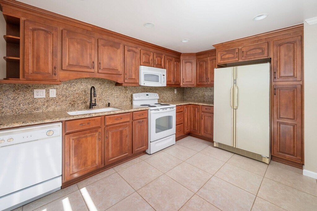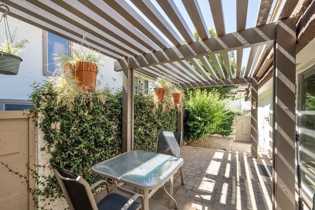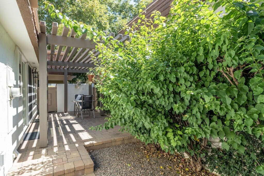 This Rockpointe townhouse is a much desired one story end unit. The kitchen features granite counters and splash, updated cabinets and refrigerator. The sliding door from the kitchen opens to an enclosed patio. Formal dining area opens to a nice sized living room with a brick fireplace. Two bedrooms, two baths and a two car attached garage. Attractive, quiet complex features lush greenbelts with mature trees, walkways and several pools. You will love living here.