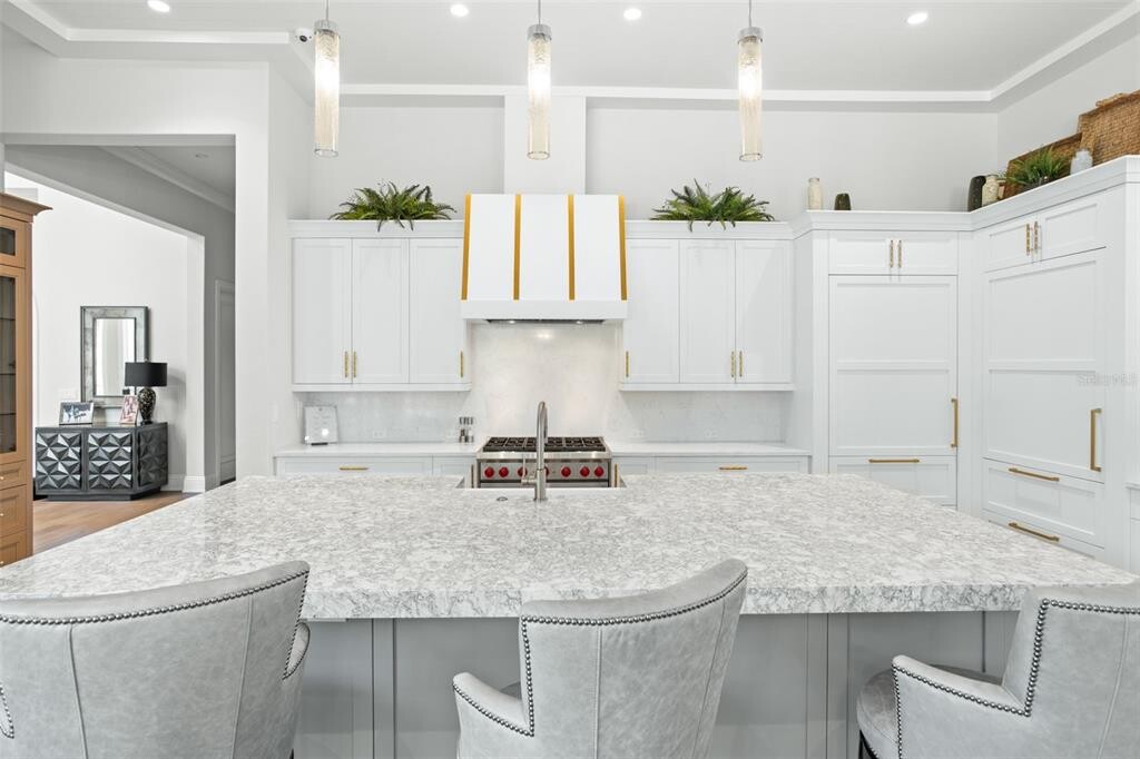 Experience the unparalleled luxury of Golden Oak at Walt Disney World® Resort! Situated in one of the most coveted locations,this fully furnished exquisite 5-bedroom,5.5-bath estate spans 6,704 square feet of thoughtfully designed living space,blending sophistication and comfort throughout is now available 2/15/26-10/15/26. The moment you enter through the custom wrought iron front door,you’re welcomed by a grand foyer with soaring ceilings,a formal seating area,and expansive windows that showcase breathtaking views of the pool and spa. The open-concept layout creates a seamless flow between spaces,enhancing the home’s bright and airy ambiance—ideal for both relaxation and entertaining. The chef’s kitchen is a true masterpiece,featuring sleek granite countertops,a premium Wolf gas range,and a wet bar complete with a wine cooler—perfect for hosting gatherings. The kitchen effortlessly transitions into the spacious family room,where soaring cathedral ceilings amplify the sense of space and light. Sliding glass doors open to the expansive outdoor Florida room,where a fully equipped summer kitchen awaits. Outfitted with granite countertops,a gas grill,mini fridge,and an adjacent gas fireplace,this area exemplifies the best of indoor/outdoor living. A convenient half-bathroom further enhances the functionality of the space,while the serene poolside setting offers an idyllic spot for unwinding or entertaining. The primary suite serves as a private retreat,offering tranquility and seclusion. Large windows flood the room with natural light,while the spa-inspired bathroom features dual vanities with striking granite countertops,an oversized walk-in shower,and a luxurious freestanding soaking tub. The custom walk-in closet is a showstopper,with a center island and abundant storage,keeping everything perfectly organized. The first floor also includes a spacious office and a well-appointed laundry room for added convenience. Upstairs,a bonus room with a pool table provides an entertaining haven,while three additional bedrooms,each with en-suite bathrooms and walk-in closets,ensure privacy and comfort for family members or guests. Designed with both luxury and functionality in mind,this home seamlessly integrates expansive living areas,refined finishes,and effortless transitions between indoor and outdoor spaces. It strikes the perfect balance between modern elegance and family-friendly comfort. The world-renowned Four Seasons Resort Orlando is just steps away,offering a golf course,spa,Michelin-starred dining,and concierge services. Schedule your private tour today! MLS# O6257763