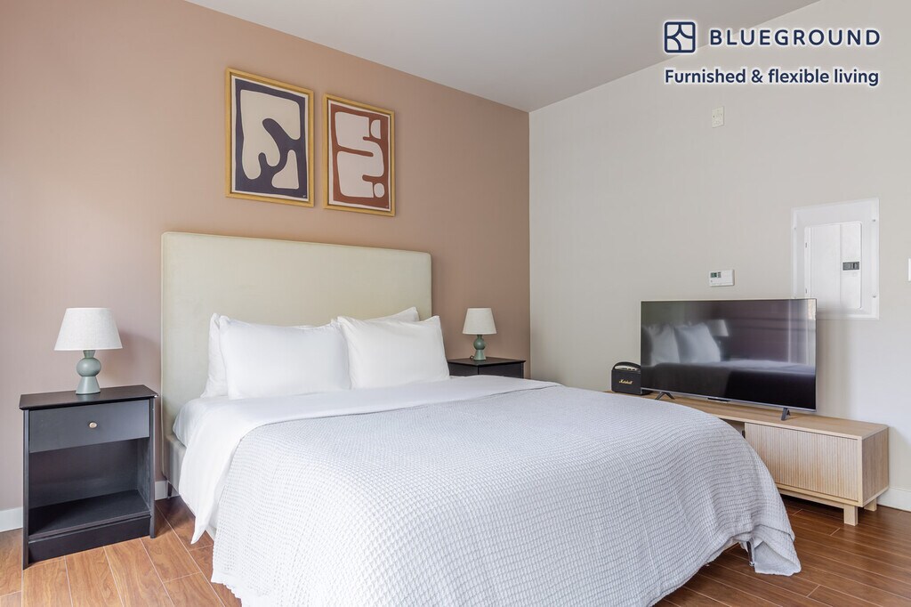 Show up and start living from day one in Bellevue with this stylish studio Blueground apartment. You’ll love coming home to this thoughtfully furnished, beautifully designed, and fully equipped West Bellevue home. (ID #SEA833) The advertised rate of $1,450/month is the lowest available price, based on a 1 month(s) and 29 day(s) stay with a move-in date of November 12, 2025. If you’re looking for a 1-year stay, the rate is $2,530/month. Rates vary depending on the duration of stay, season, and other parameters. For exact pricing and additional pricing components, please visit our website and enter your desired move-in and move-out dates. The rate is applicable when billed upfront; it can be higher if billed in multiple payments. Brokers are welcome to reach out. Were you looking for an unfurnished lease? Try Blueground instead and upgrade from unfurnished to furnished living: - Furnished at rates comparable to unfurnished - No setup or furniture costs - save thousands - Move-in ready - save time, just bring your suitcase Designed with you in mind Thoughtfully designed with bespoke finishes, modern furnishings, and a fully equipped kitchen, you’ll enjoy that “I’m home” feeling with this Blueground apartment. Whether you’re lounging in your charming living room streaming the latest and greatest entertainment on the smart TV or premium wireless speaker, or getting some well-earned rest on the superior quality mattress with luxury linens, you’ll fall in love with everything this West Bellevue apartment has to offer. This apartment also offers in-apartment laundry. Sleeping arrangements King Bed, 70.8in/180cm Amenities Building amenities unique to this studio apartment include an on-site: - Dryer - Elevator - Washing machine - Parking - Pets allowed Arrival and ongoing support The entire apartment is yours to enjoy! Throughout your stay, you’ll have access to our Client Experience team through the Blueground App. You can schedule additional cleanings, submit maintenance requests, and view our neighborhood recommendations with just a few taps. We’ll share all details upon confirmation of your stay. Other things to note This Blueground apartment has flexible lease options, allowing you to book it for one month, a year, or more. Pets are welcome, though weight limits and breed restrictions apply and may incur fees. Parking is offered based on availability and is subject to a fee. We take great pride in ensuring every photo displayed is shot in our own units with our actual furnishings. That said, we regularly refresh our decor and furniture arrangement, which may differ from what’s pictured. [SI]
