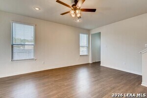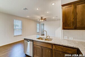 Beautiful 3-bedroom, 2.5-bath townhome located in the gated community of Lynwood Village, built in 2020. This well-maintained home offers an open-concept layout with high ceilings, wood-look vinyl flooring downstairs, and a modern kitchen featuring granite countertops and stainless steel appliances. Washer, dryer, and water softener are included for added convenience. Upstairs you'll find three spacious bedrooms, two full bathrooms, and a functional laundry area. The primary suite features a double vanity and ample closet space. The garage is equipped for electric vehicle charging, and the covered patio provides a comfortable space to relax. Residents of Lynwood Village enjoy access to community amenities including a private park, basketball court, dog park, and playground. Conveniently located with easy access to Loop 1604, US-90, and I-410, and just minutes from Lackland AFB, Medina Base, NSA, major employers, shopping, and dining. Homes in Lynwood Village lease quickly - schedule your showing today!