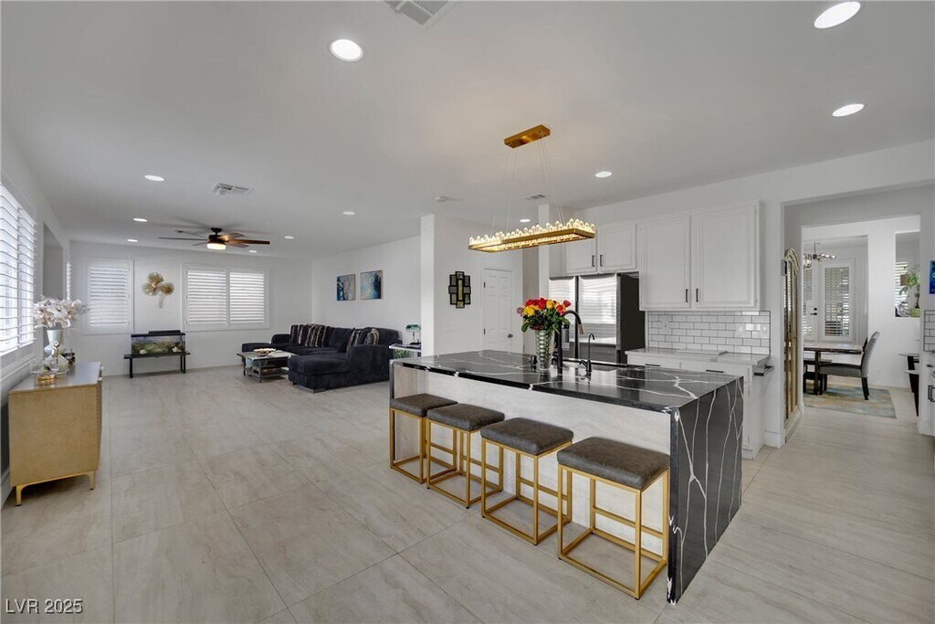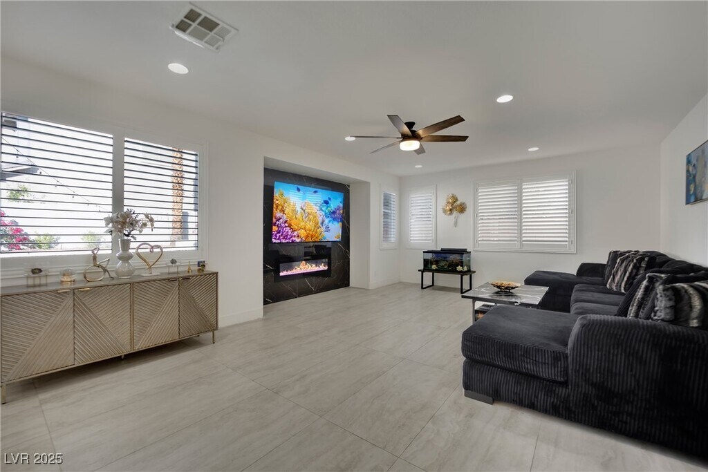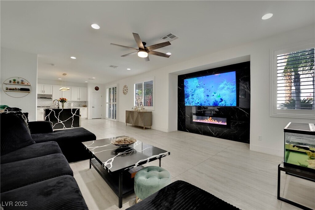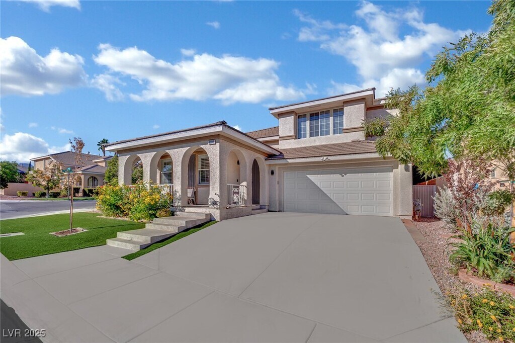 Stunning Corner Lot Home with Spa/Pool Combo! This beautiful home boasts an open floor plan with tile flooring throughout. Enjoy brand new appliances, fresh neutral paint, and modern fixtures. The home is equipped with stylish shutters, and the exterior features low-maintenance artificial landscaping in both the front and rear yards. The spacious master suite includes a private balcony with stunning strip views, while the covered patio offers a perfect spot for outdoor relaxation. Conveniently located within walking distance to Gardens Park and just minutes from Downtown Summerlin, this gem won’t be on the market for long!