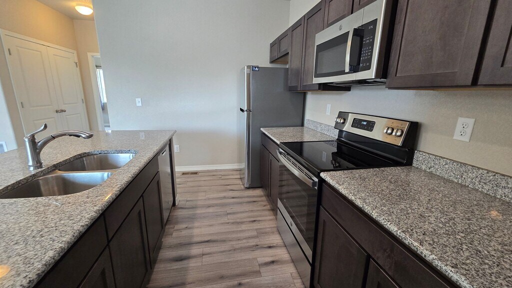 **FIRST MONTH RENT FREE!** The Cottages at Chapel Heights - Near Academy Park Loop & E. Fountain Blvd. - Two story single family home built in 2021. Approx. 1,108 total finished sq. ft. One bedroom with private 3/4 bathroom on first level, second bedroom on upper level, as well as additional full bathroom. Upper level also features kitchen with all appliances and granite countertops, breakfast bar, dining area, laundry room with washer and dryer, and living room. The backyard is fully fenced and features a sprinkler system. Home has central air conditioning, carpeted bedrooms and wood laminate floors. Access to community and fitness center included. One mature dog under 50 lbs. considered with owner approval. No smoking of any kind in property. Trash Service Included. Harrison District 2 Schools. ASK ABOUT OUR MILITARY DISCOUNT! For details and showing appointment call CLEMENTE REAL ESTATE SERVICES . Portable Tenant Screening Reports (PTSR): 1) Applicant has the right to provide Clemente Real Estate Services, Inc. with a PTSR that is not more than 30 days old, as defined in § 38-12-902(2.5), Colorado Revised Statutes; and 2) if Applicant provides Clemente Real Estate Service, Inc. with a PTSR, Clemente Real Estate Services, Inc. is prohibited from: a) charging Applicant a rental application fee; or b) charging Applicant a fee for Clemente Real Estate Services, Inc. to access or use the PTSR.