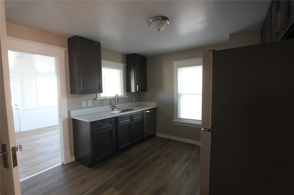 Two year lease. New New New. Adorable renovated two bedroom, one bath with a detached one space garage which doubles as shed, large back yard and a front porch that runs the length of the house. The floor plan is a delight as you enter the living room a lot of natural light creates a warmth. There is vinyl plank flooring throughout the home. Kitchen has stylish granite counter tops, an abundance of cabinets, stainless appliances and a pantry. Appliances include;dishwasher, stove, refrigerator an built-in microwave. Immediately off the kitchen is a dining space/family room with a door leading to the backyard space. There is no fencing on the property. The two bedrooms have nice size closets. Hallway bath boasts stark white features, a shower only and linen shelving. The lower level is a walk out with two storage rooms, open storage and laundry area Vinyl tilt in windows, freshly painted stylish wall colors, new light fixtures. Pets; CATS allowed with a $250 pet deposit and an extra $25.00 per month Security deposit is $1800.00 Tenant pays water, sewer, trash, gas and electric. There are washer dryer hook up in the basement. Tenant supplies their own w/d. Application process. Webster Groves School District. Occupancy max is 4 people.