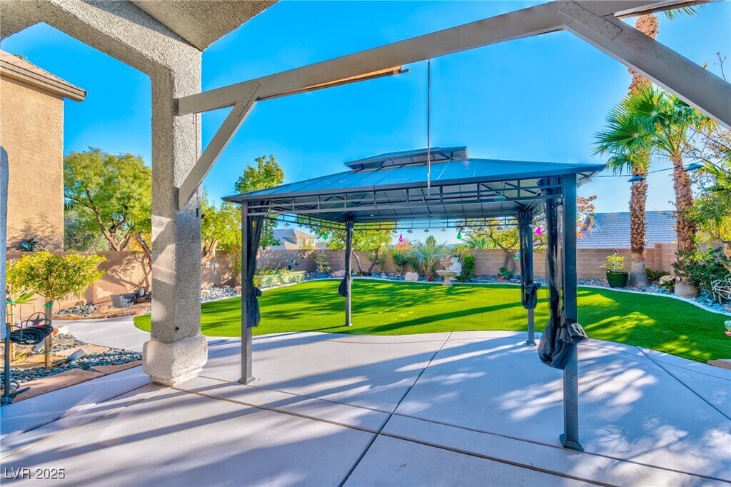 Discover this beautifully upgraded single-story gem in the heart of Summerlin! Step into an inviting open floor plan enhanced by stylish upgraded flooring and a custom kitchen featuring rich cabinetry, stainless steel appliances, an updated backsplash, and a charming built-in breakfast nook. Bay windows in both the primary suite and kitchen fill the home with natural light while showcasing serene views of the zen-inspired backyard and surrounding mountains. The primary suite includes custom closets for elevated convenience. Enjoy a 3-car tandem garage with built-in storage, a separate laundry room with sink, and an elegant, updated tile fireplace. The backyard is a true retreat with pristine mature landscaping, a built-in BBQ, covered patio, and dedicated dog run—perfect for outdoor living and entertaining. Ideally located just minutes from Downtown Summerlin, City National Arena, and Las Vegas Ballpark, this home offers the best of comfort and convenience.